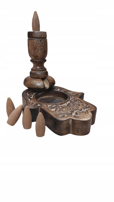 Ароматические горелки с обратным потоком сконструированы таким образом, что дым от ароматической палочки, который тяжелее воздуха, стекает вниз в контейнер в нижней части камина. Дым от ароматической палочки, словно туман, окружает камин и мягко стекает по желобкам камина.