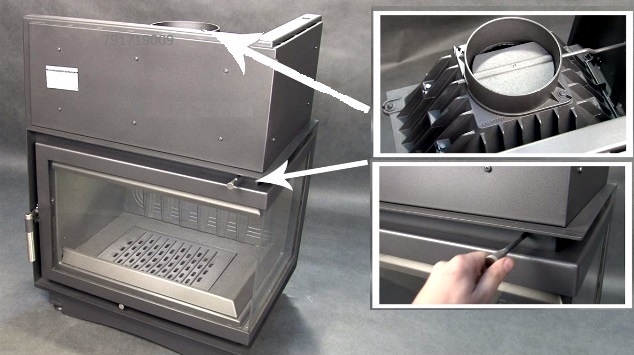 Повышенная эффективность топки за счет ручного регулирования тяги дымохода с помощью встроенной заслонки.