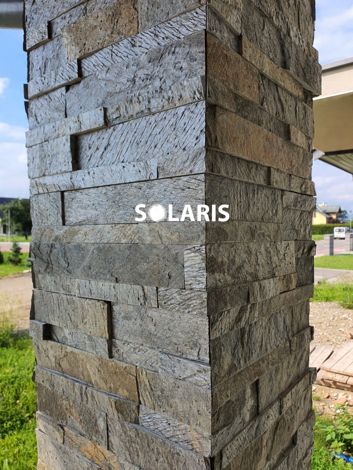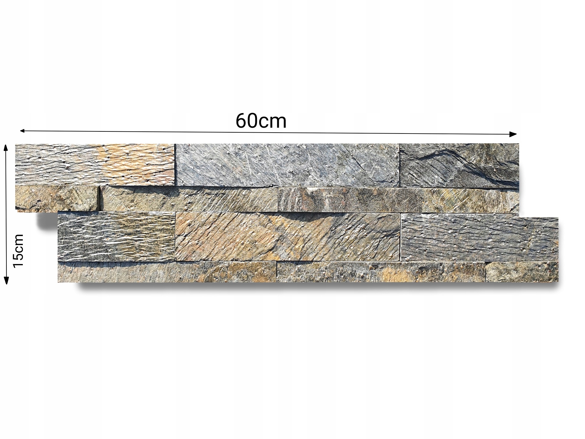 Представленные панели представляют собой модульную систему декоративных камней из натурального камня. Каждая панель состоит из камней, соединенных между собой специальной смолой, образующих Z-образный модуль. Его размеры обычно составляют 15 см х 55 см/60 см. Благодаря Z-образной форме обеспечивает невидимые соединения между отдельными каменными панелями на стене.