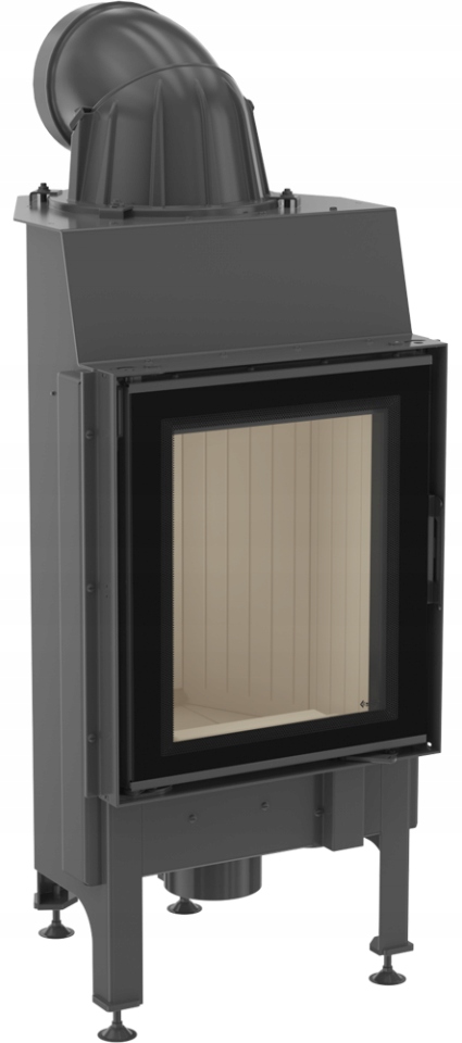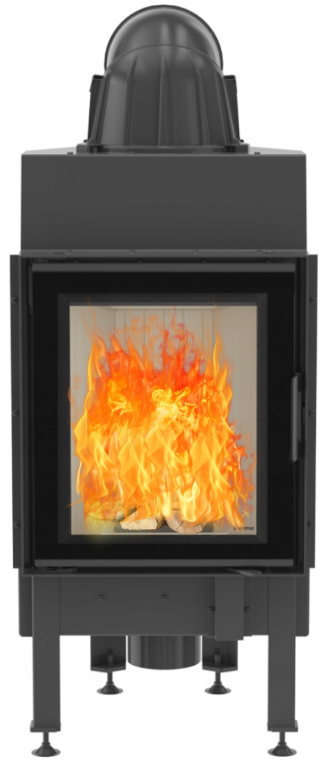 Стеклянное декоративное стекло, выходящее из температуры до 660 ° C, что придает камину современный и элегантный вид, оптически увеличивает переднюю часть вставки. Дверь вставки имеет современную скользящую ручку.