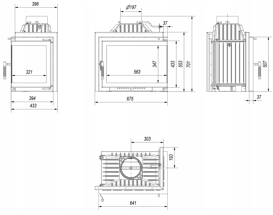 Вставка воздушного камина чугунная с заслонкой Simple M/S 8 правая или левая BS (стыковочное стекло без стойки)