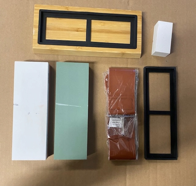 Все необходимые инструменты для заточки здесь: Поставляется с точильным камнем высочайшего качества с зернистостью 400/1000, 3000/8000, бамбуковой основой, выравнивающий камень