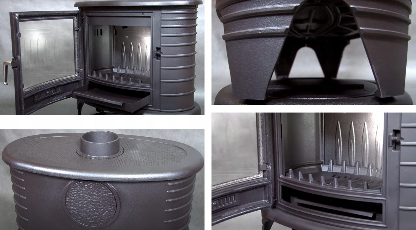 Максимальное использование тепла и безаварийная работа благодаря стенкам камина из качественного чугуна толщиной 8 мм.