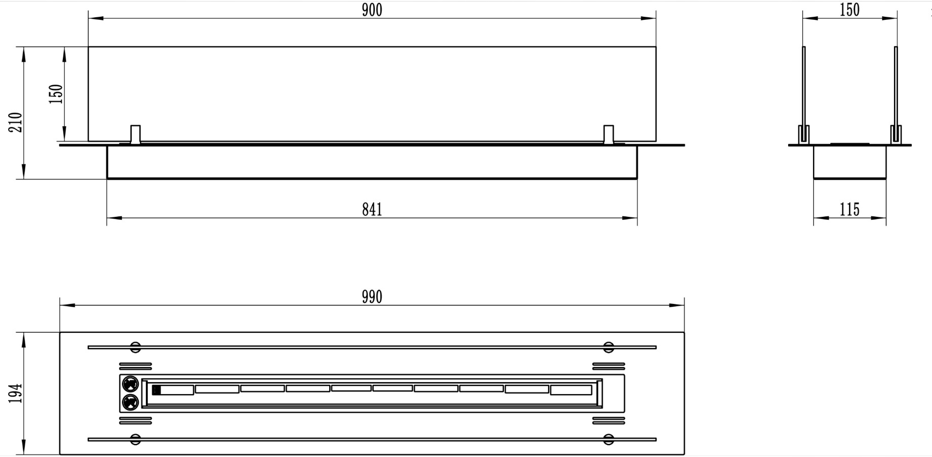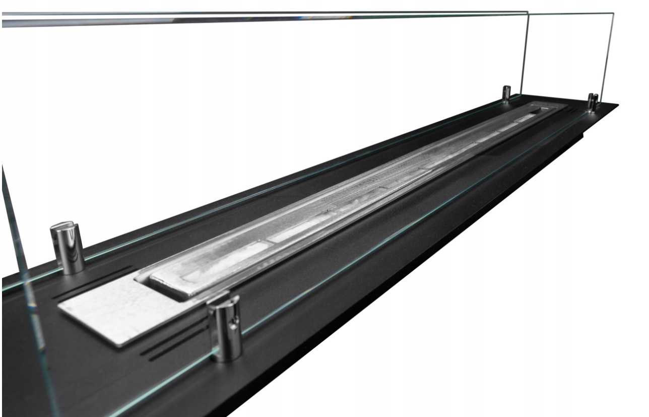 Встроенная вставка со стеклом длиной 1000 мм изготовлена из нержавеющей стали, покрытой краской, устойчивой к высоким температурам. Два полностью закаленных стекла обеспечивают безопасность использования.