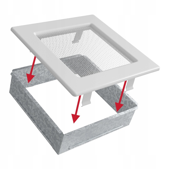 В комплект входит металлический карман с внутренними пазами для крепления решетки.