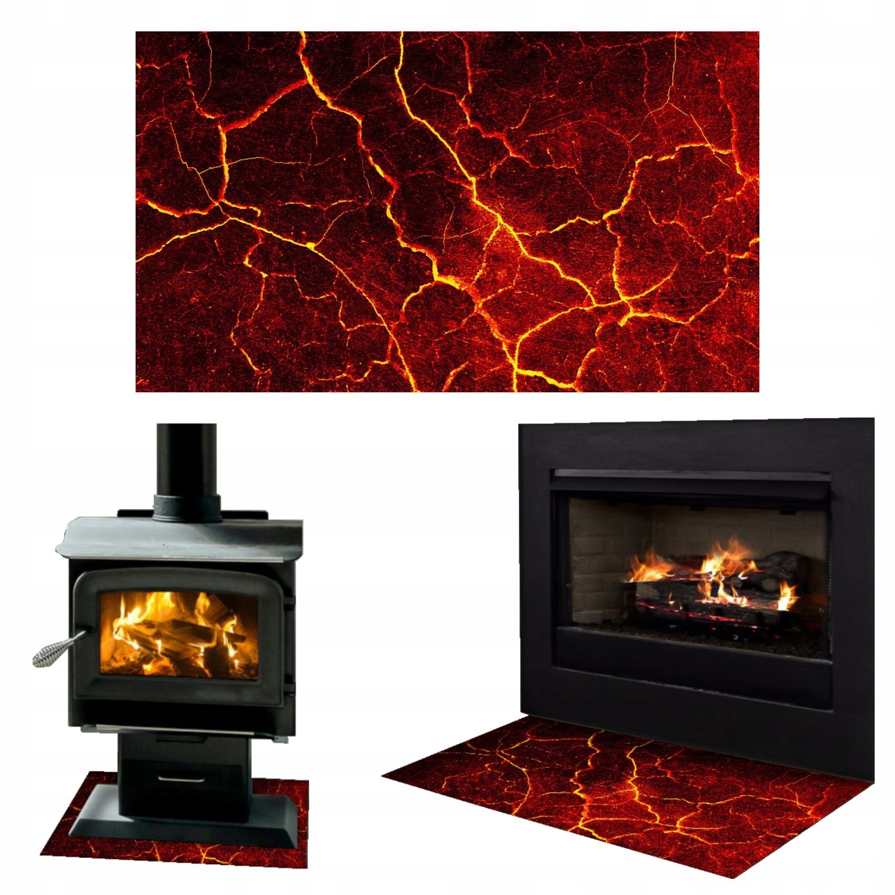 - Закаленное стекло под/перед камином, печью.