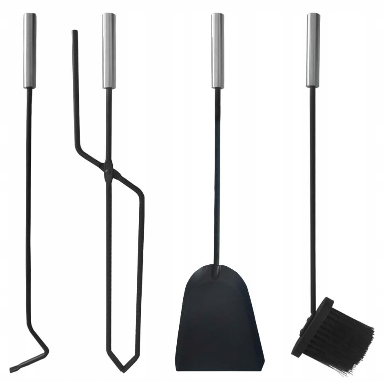 Практичный и удобный набор каминных аксессуаров поможет вам поддерживать порядок и поддерживать чистоту вокруг камина. В комплект входит подставка с ручкой, метла, совок, крючок и щипцы.