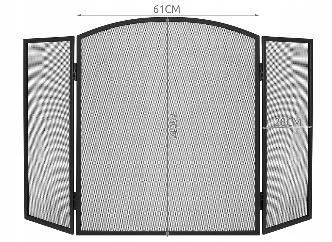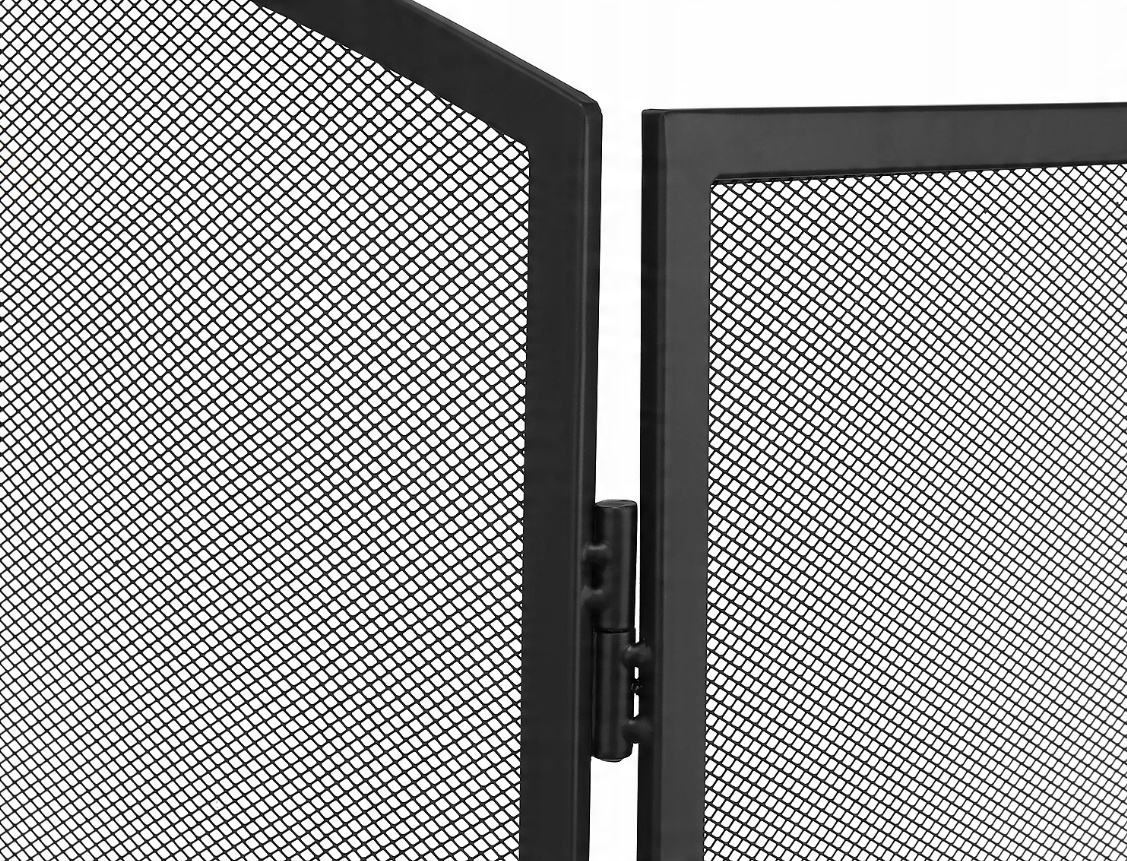 Экран состоит из трех сегментов, соединенных шарнирами, что позволяет адаптировать его под конкретную конструкцию камина и индивидуальные ожидания. p>