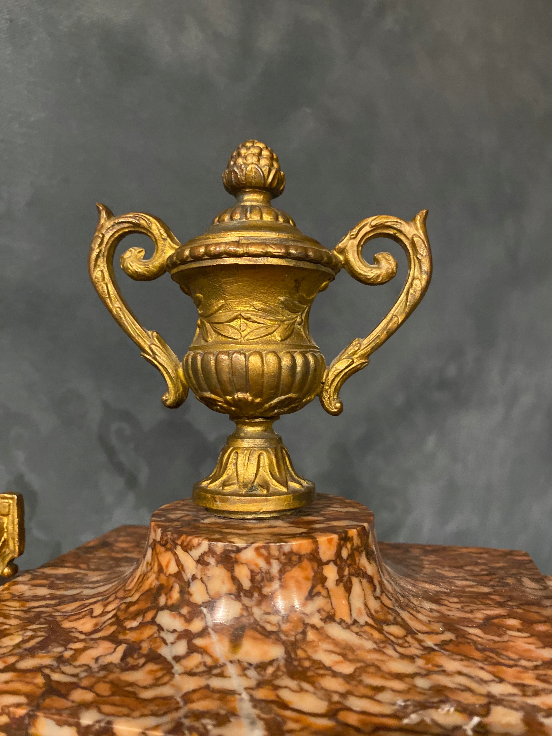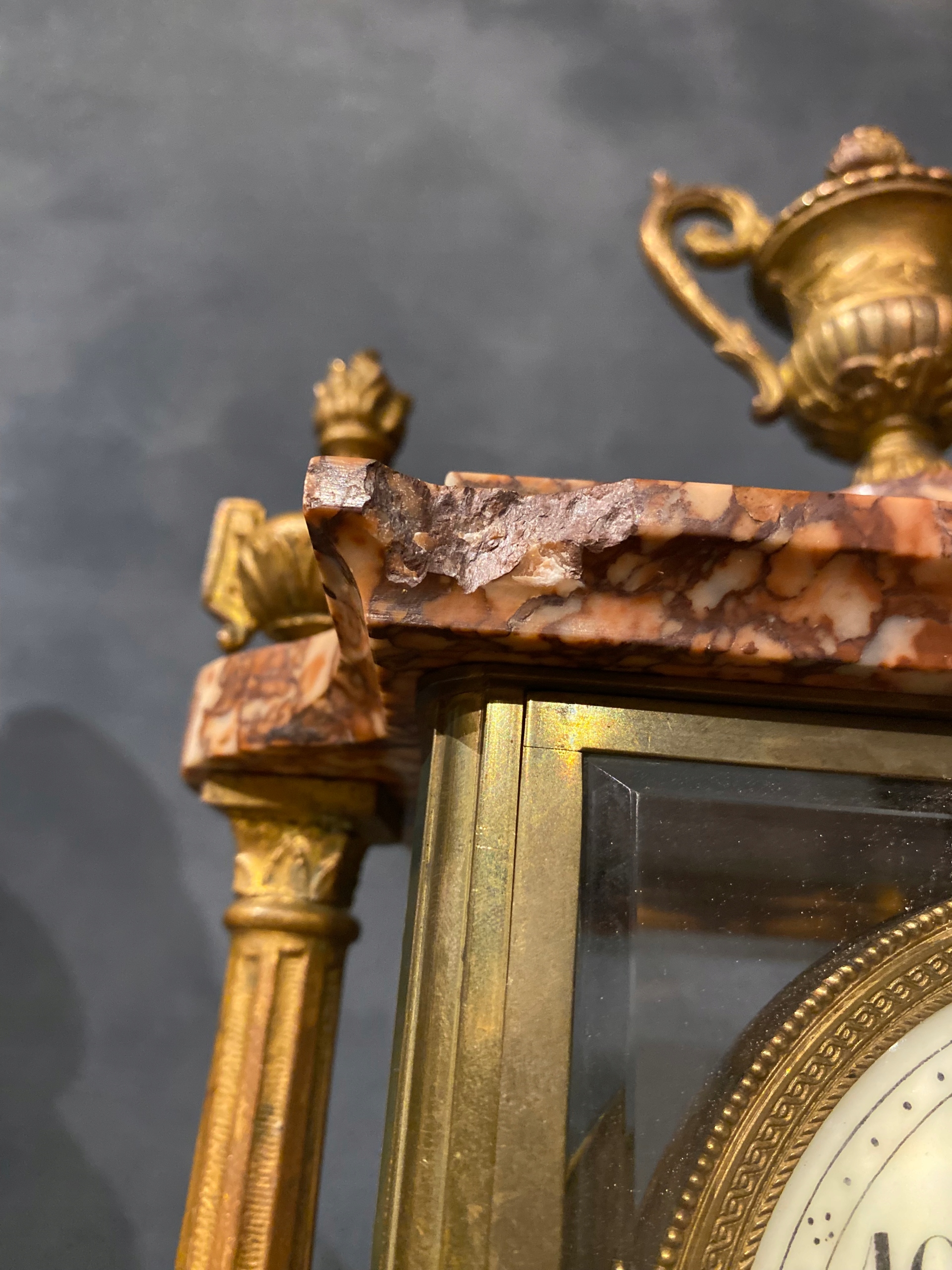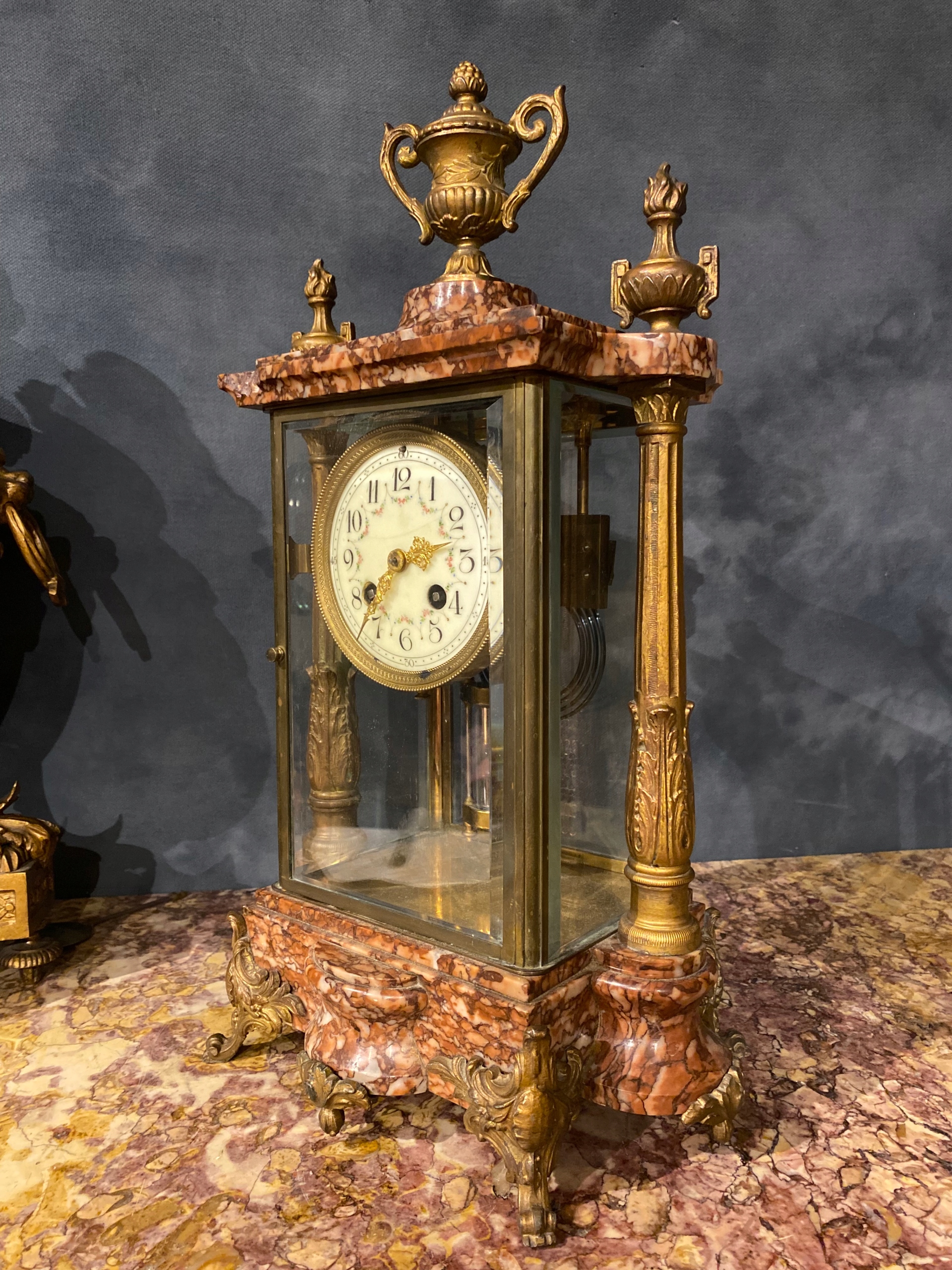 Советы по позолочке бронзы - прекрасная форма с вихрями. На последних двух фотографиях видные недостатки- небольшой повреждение мрамора и одна нога на задней части часов не является неригенным. 44,5 см