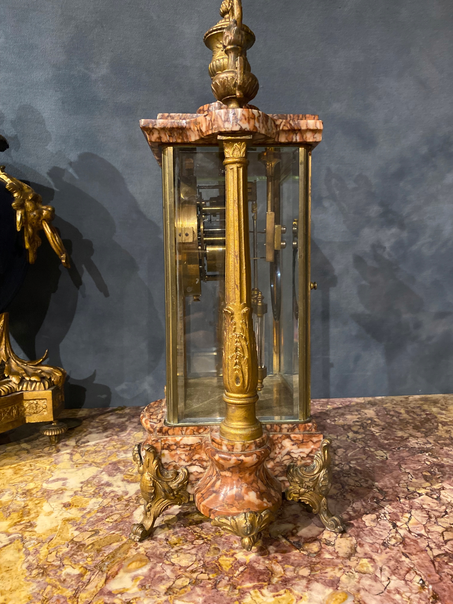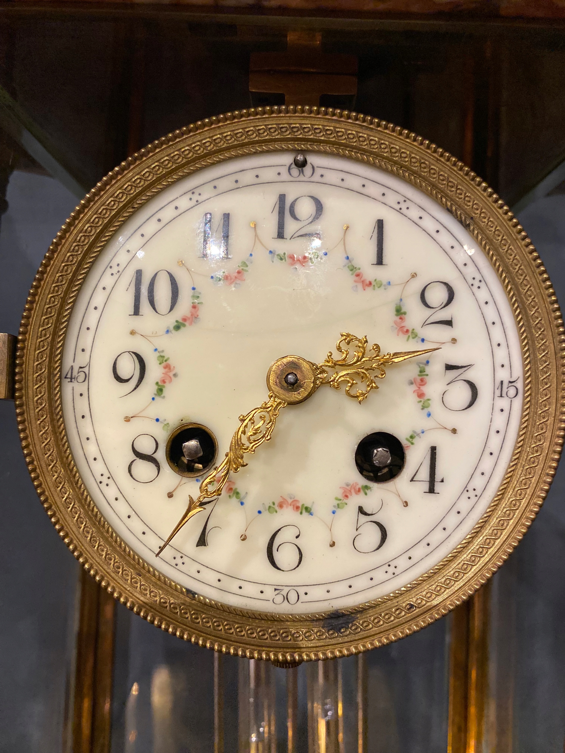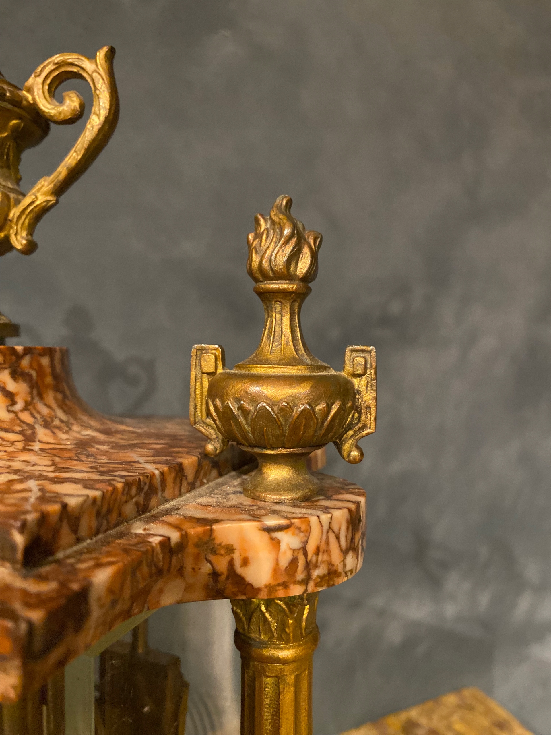 Советы по позолочке бронзы - прекрасная форма с вихрями. На последних двух фотографиях видные недостатки- небольшой повреждение мрамора и одна нога на задней части часов не является неригенным. 44,5 см