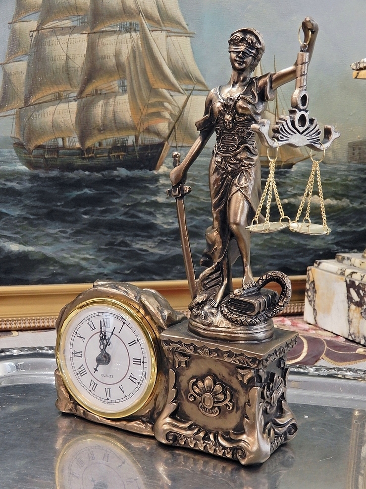 Приглашаем Вас приобрести часы со фигуркой Фемиды, греческой богини правосудия.