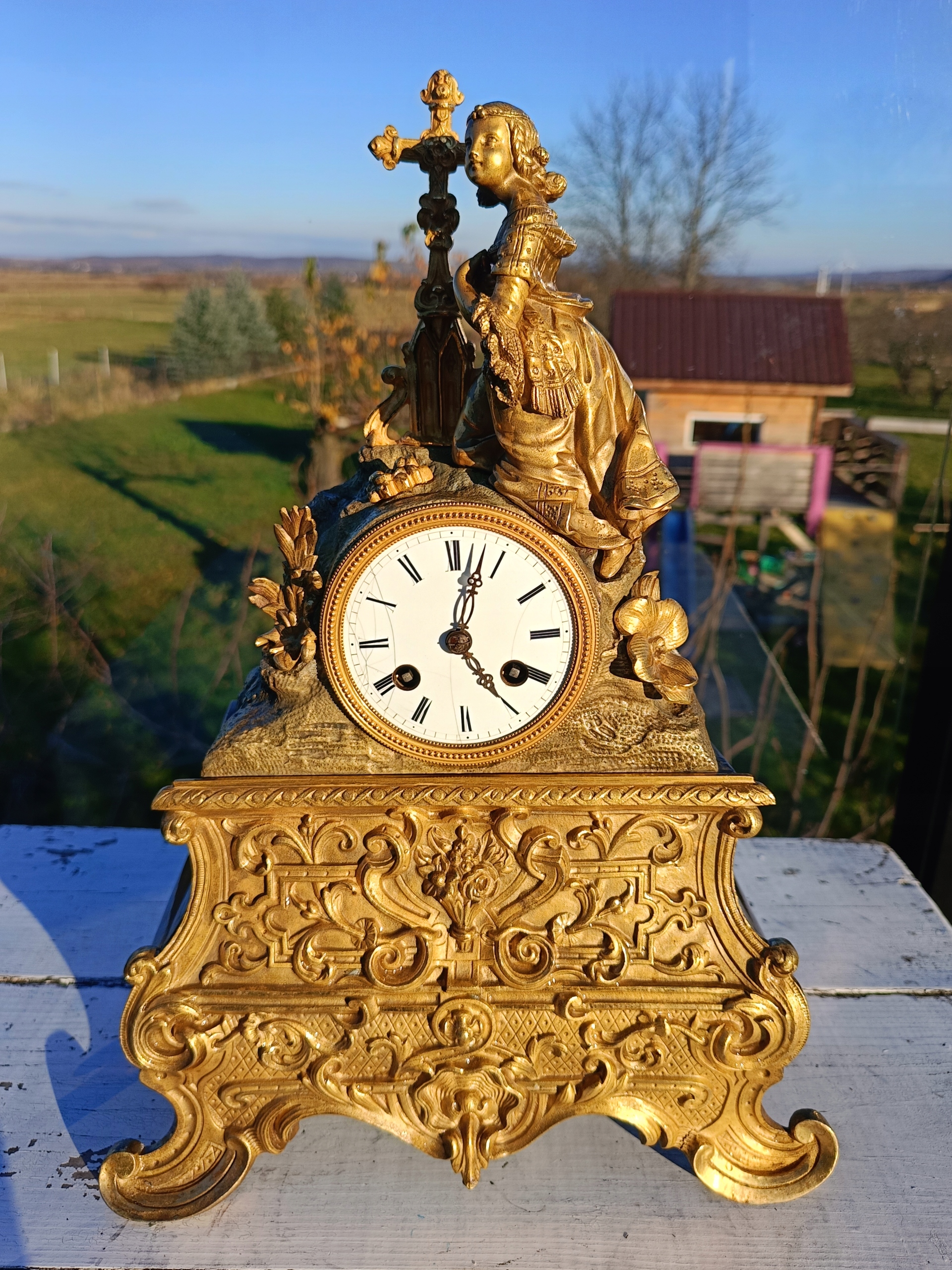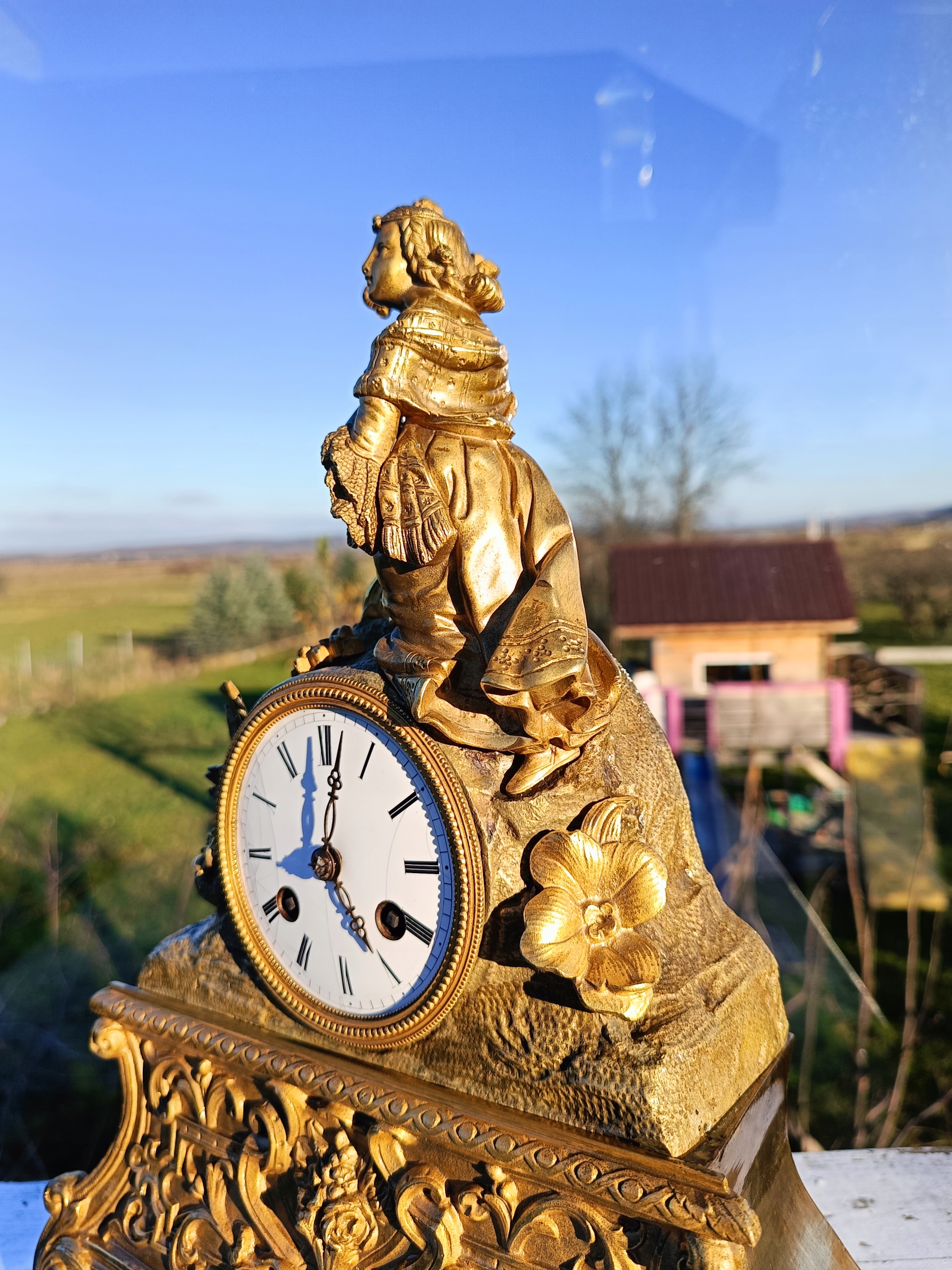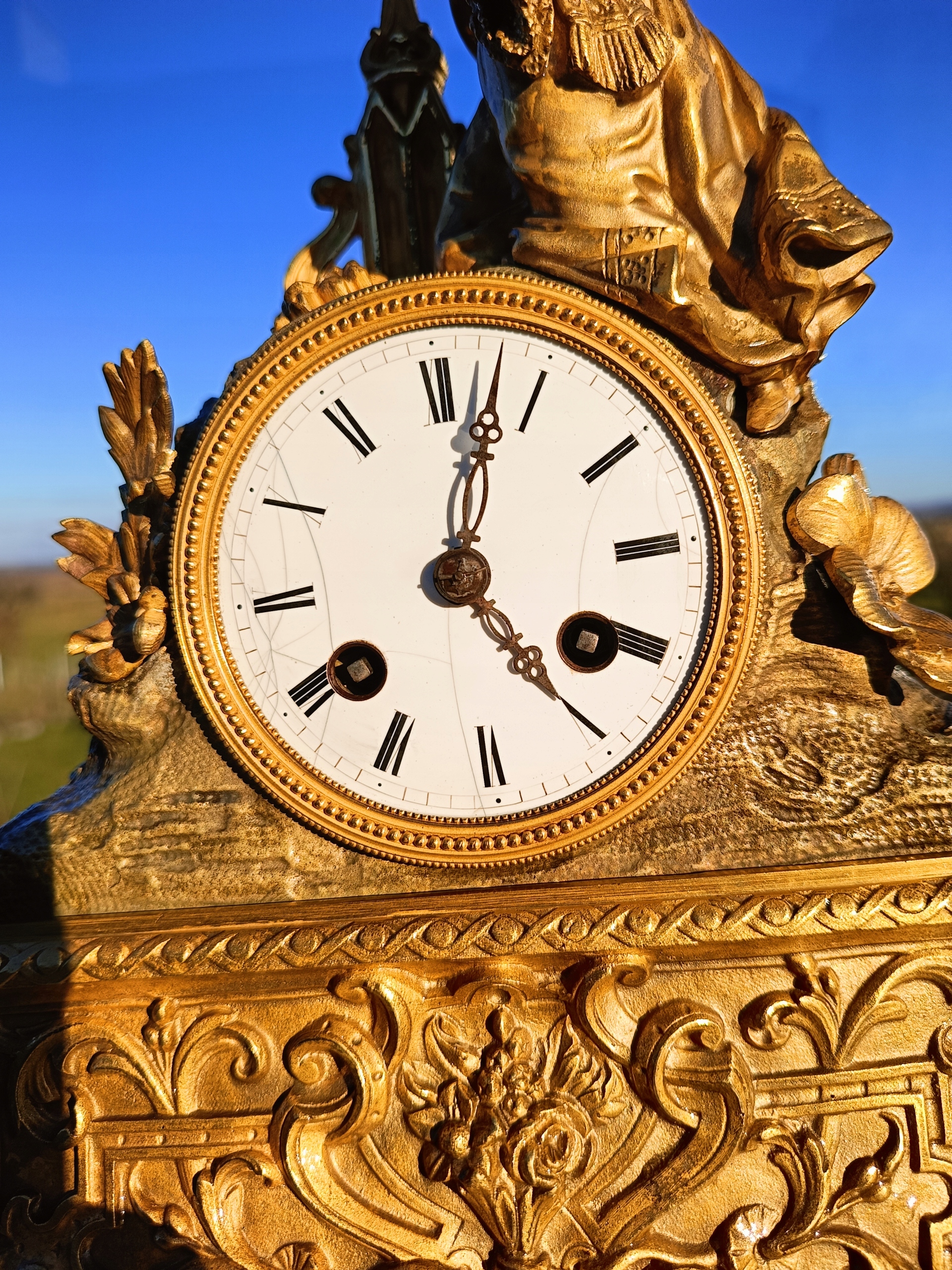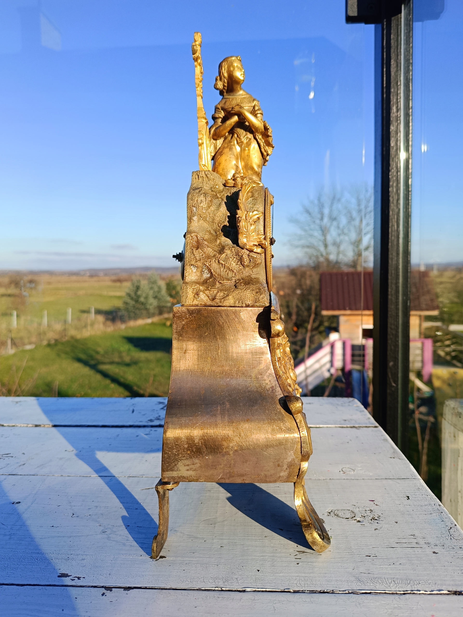 Часы изготовлены из позолоченной бронзы.