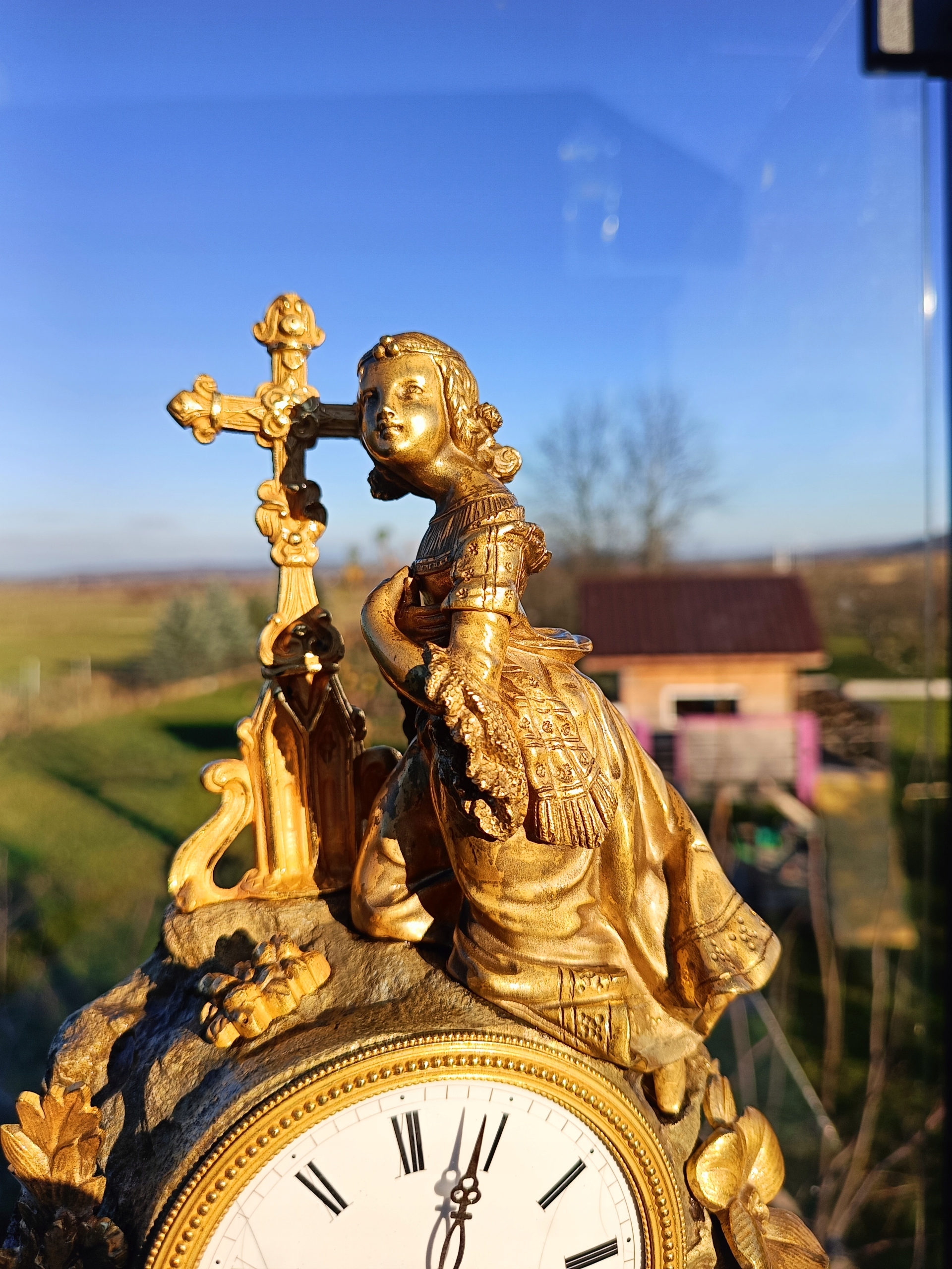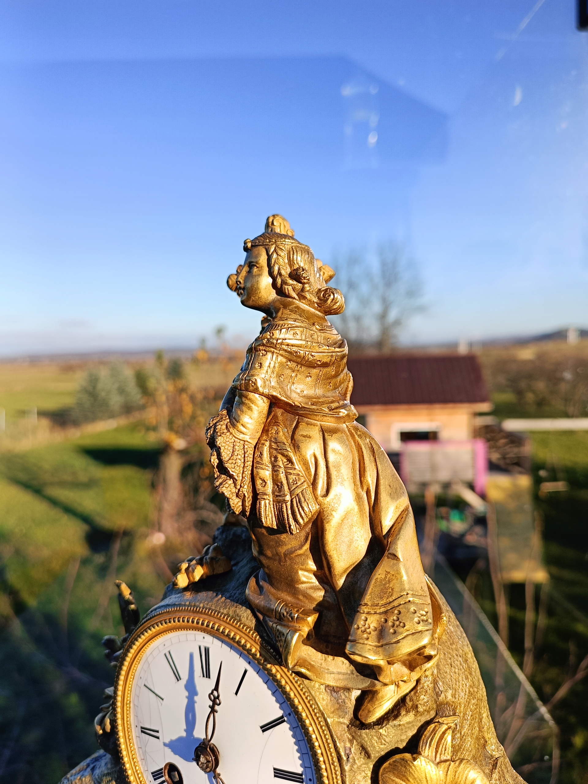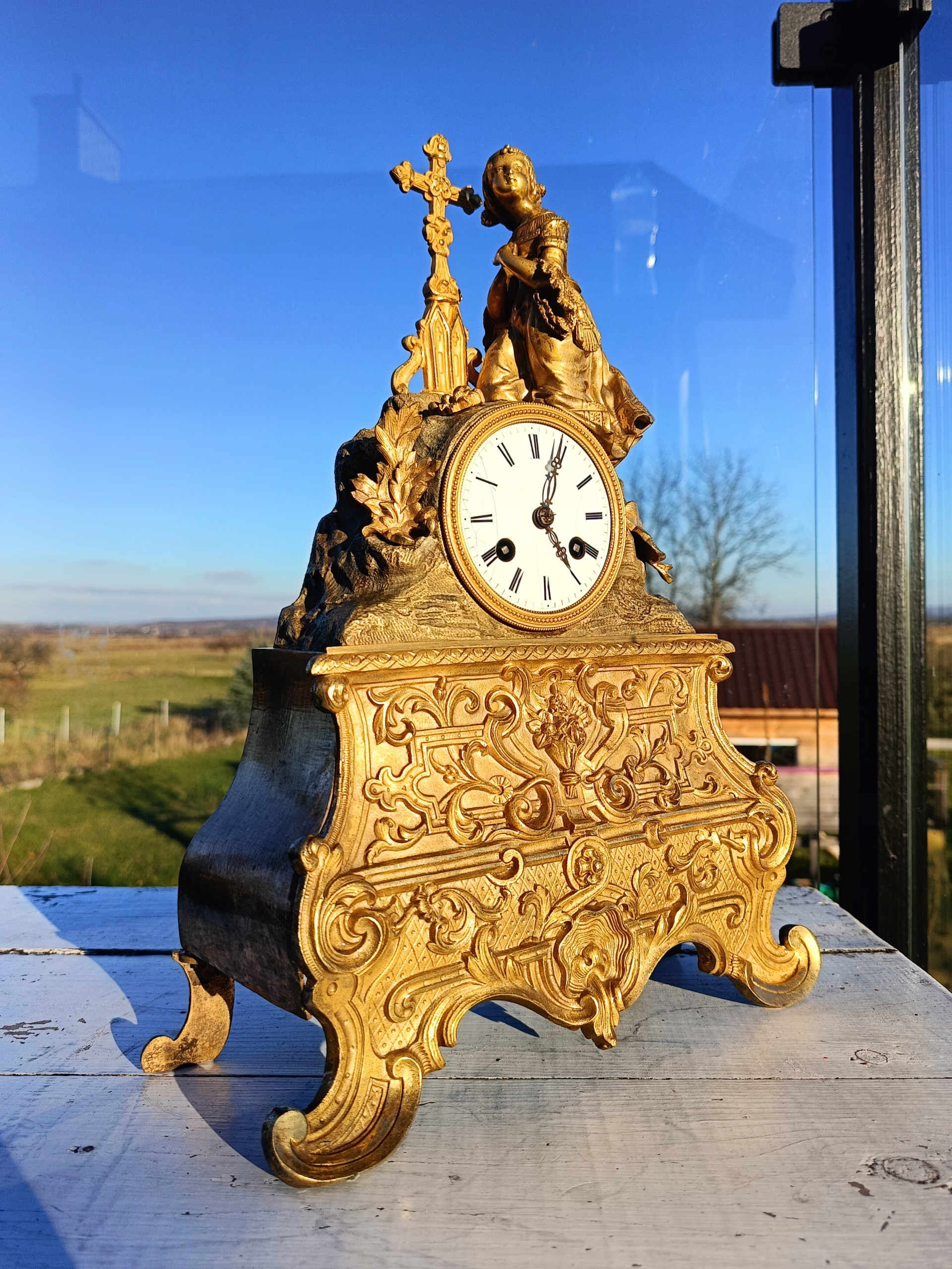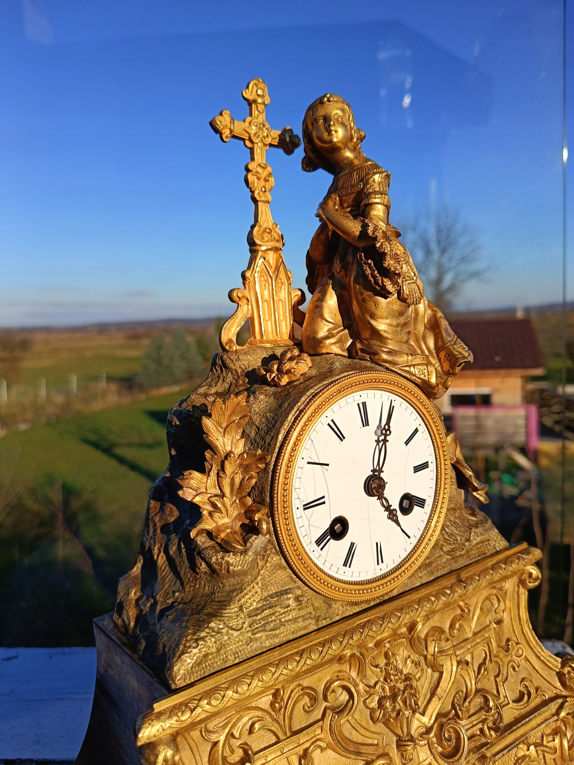 Часы изготовлены из позолоченной бронзы.