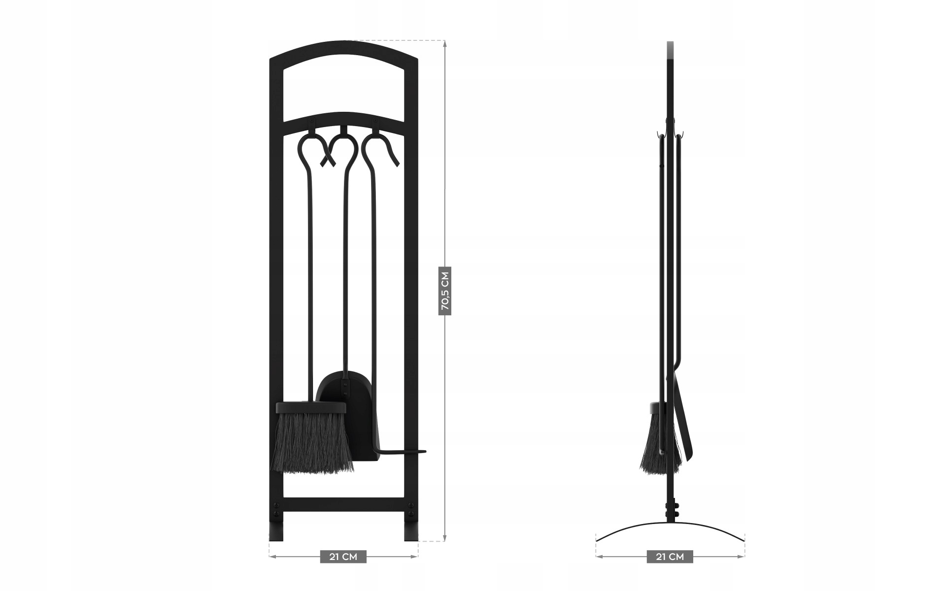 - В комплект входят: лопата, метла, кочерга, подставка.