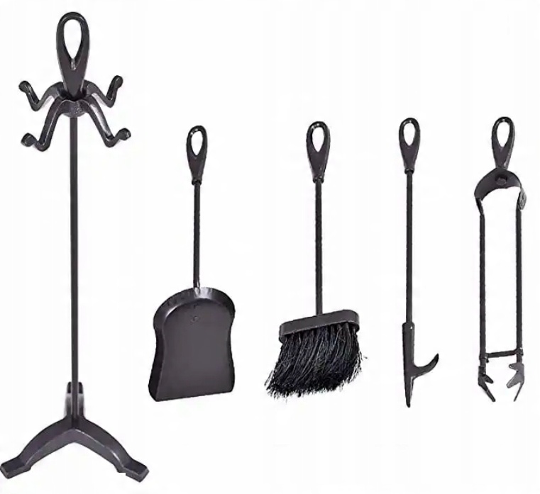 5-часовой набор- Этот набор принадлежностей камина состоит из пять инструментов, включая метлы, лопаты, лом, плоскогубцы и стойки. Каждый инструмент имеет свое место на стойке, которая помогает вести себя порядок рядом с камином