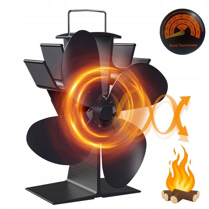 КАМИННЫЙ ВЕНТИЛЯТОР 4 ЛОПАСТИ ТЕПЛОВАЯ МОЩНОСТЬ С 1 КАМИННЫМ ТЕРМОМЕТРОМ