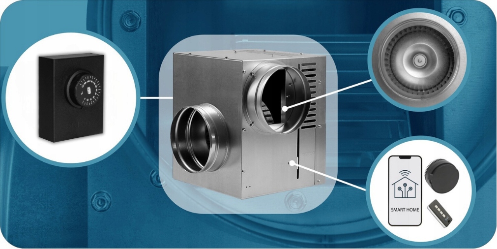 КАМІННИЙ ВЕНТИЛЯТОР DGP fi 150мм 990м3/год Регулятор + Комплект кабелів