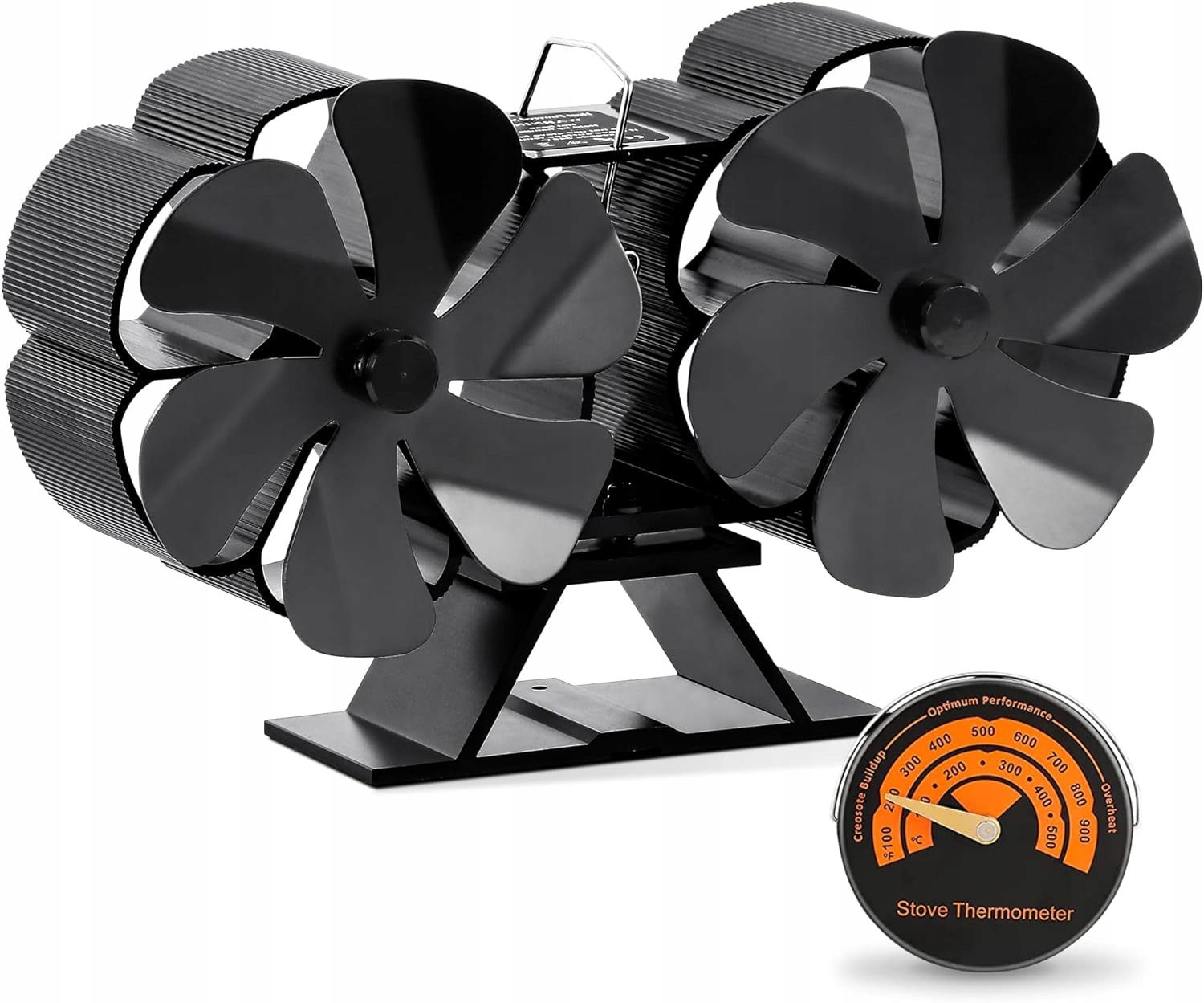 🔥Каминный вентилятор с термометром, циркуляция тепла, бесшумная дровяная горелка, дровяной вентилятор, двойная головка, 6 лопастей