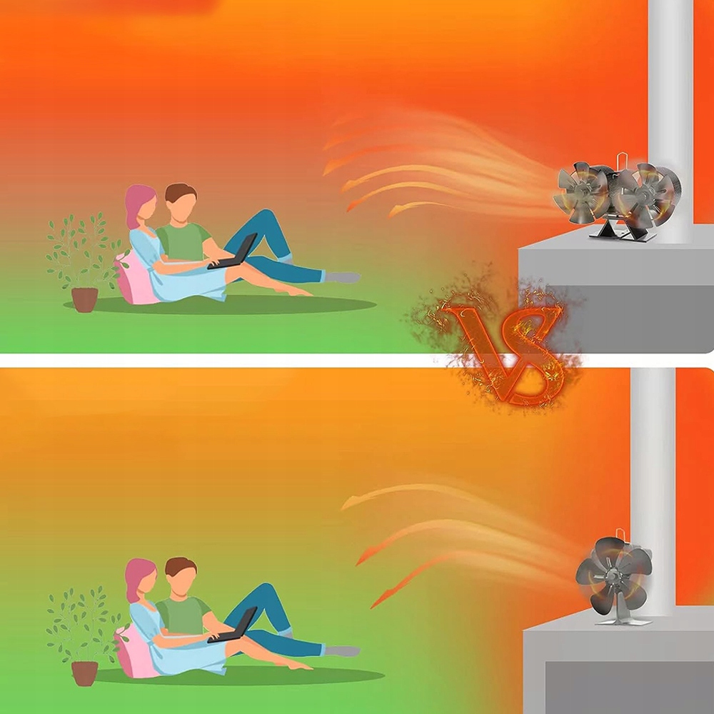 Двухмоторный вентилятор с 12 лопастями для дровяной печи может перемещать на 50 % больше теплого воздуха, чем обычные 4-лопастные вентиляторы. Это делает его наиболее эффективным и действенным способом обогрева. комната с плитой кухня.