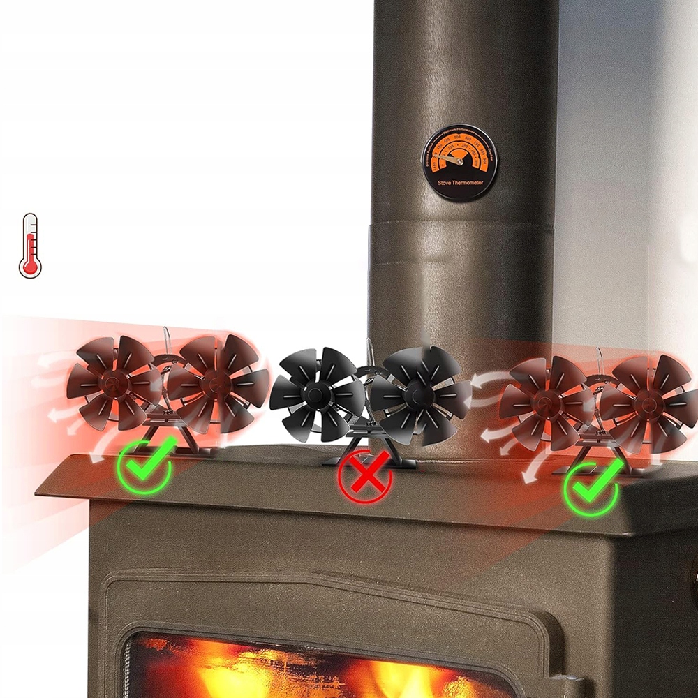- Установка не требуется, просто поместите вентилятор дровяной печи на гладкую, плоскую поверхность печи, рядом с боковой или задней частью канала духовки.
