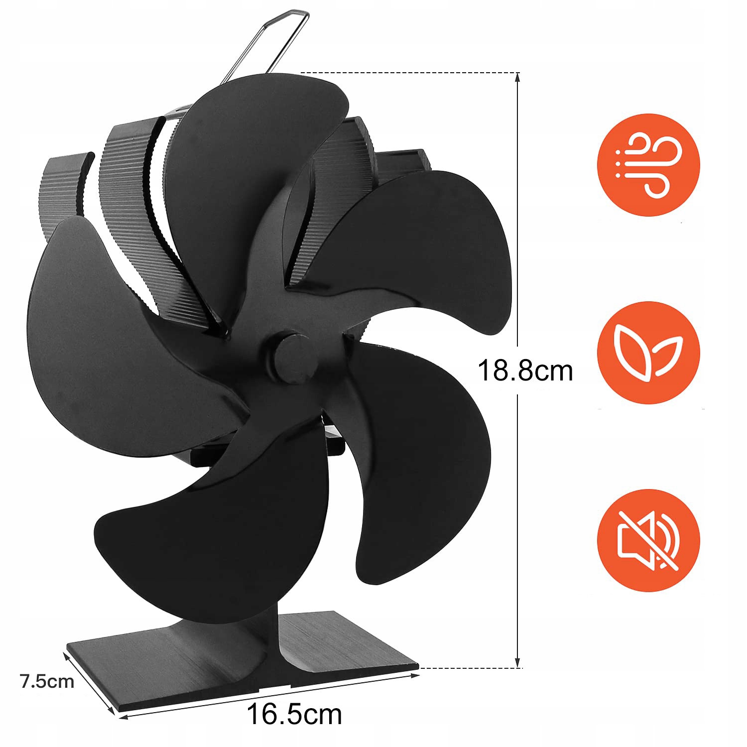 - Вентилятор для дровяной печи с 5 лопастями циркулирует большее количество теплого воздуха, отклоняя теплый воздух горизонтально вокруг вашего дома, а не направляясь прямо над потолком.