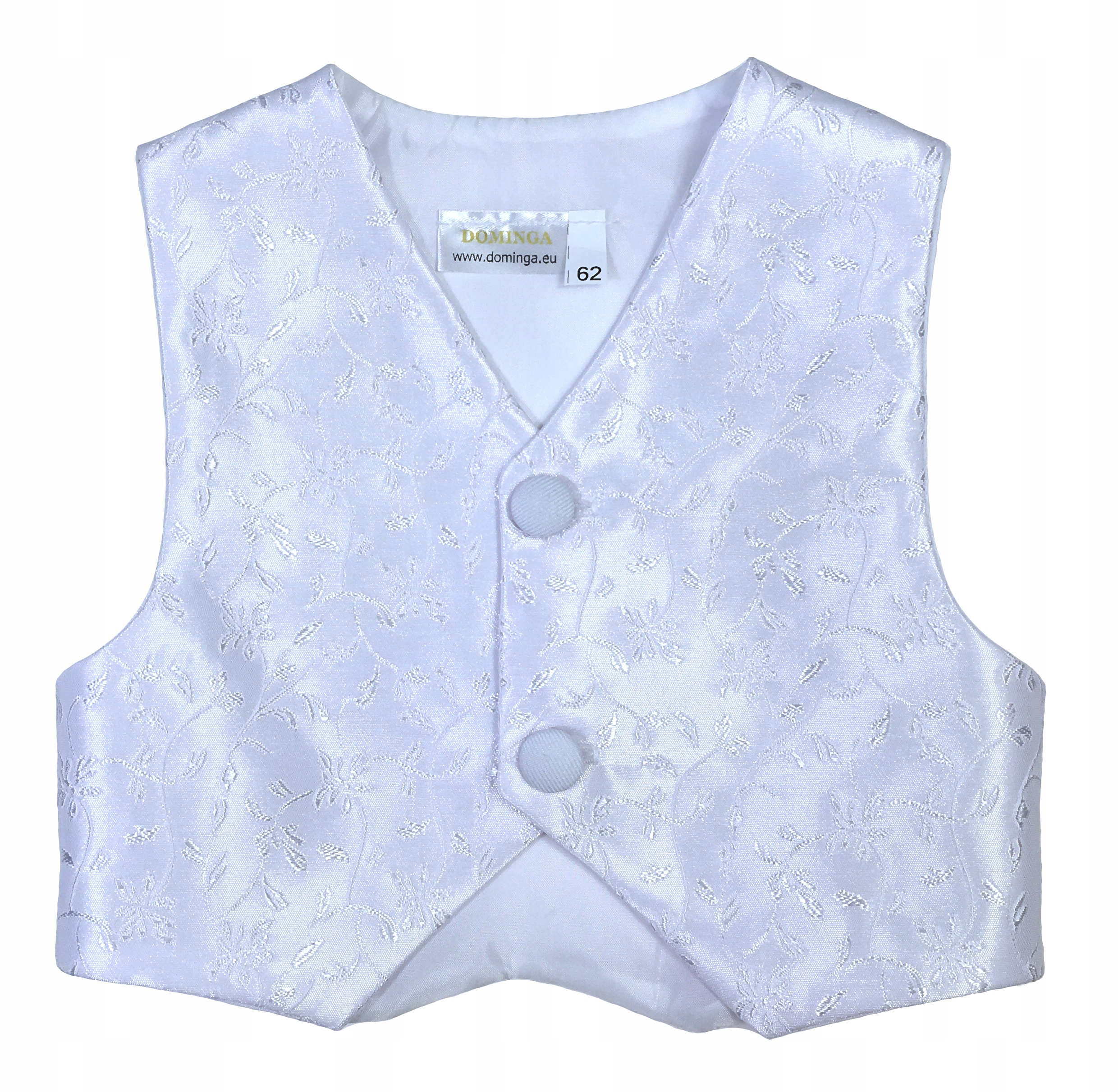 KAMIZELKA biała atłasowa wizytowa Chrzest 74 cm 6m
