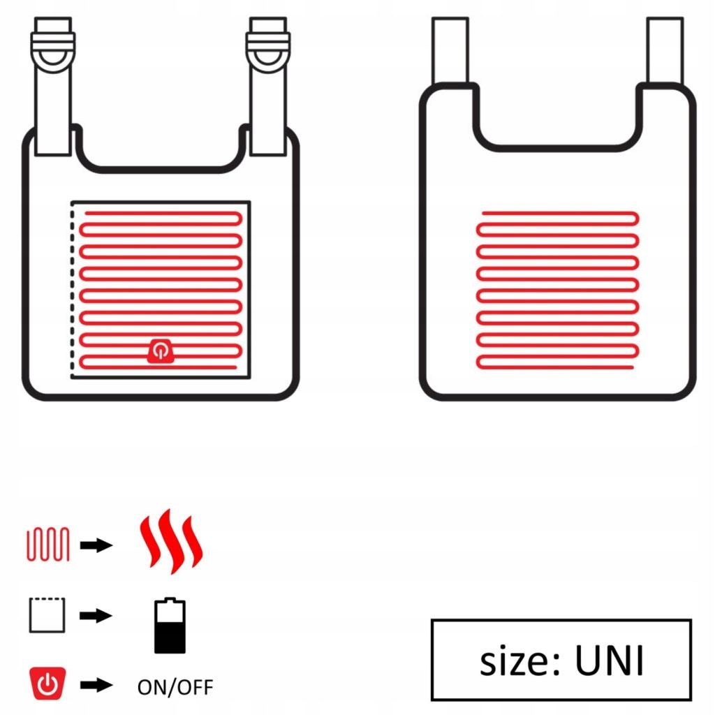 - Нагревательный элемент расположен спереди и сзади жилета, что обеспечивает равномерное распределение тепла.