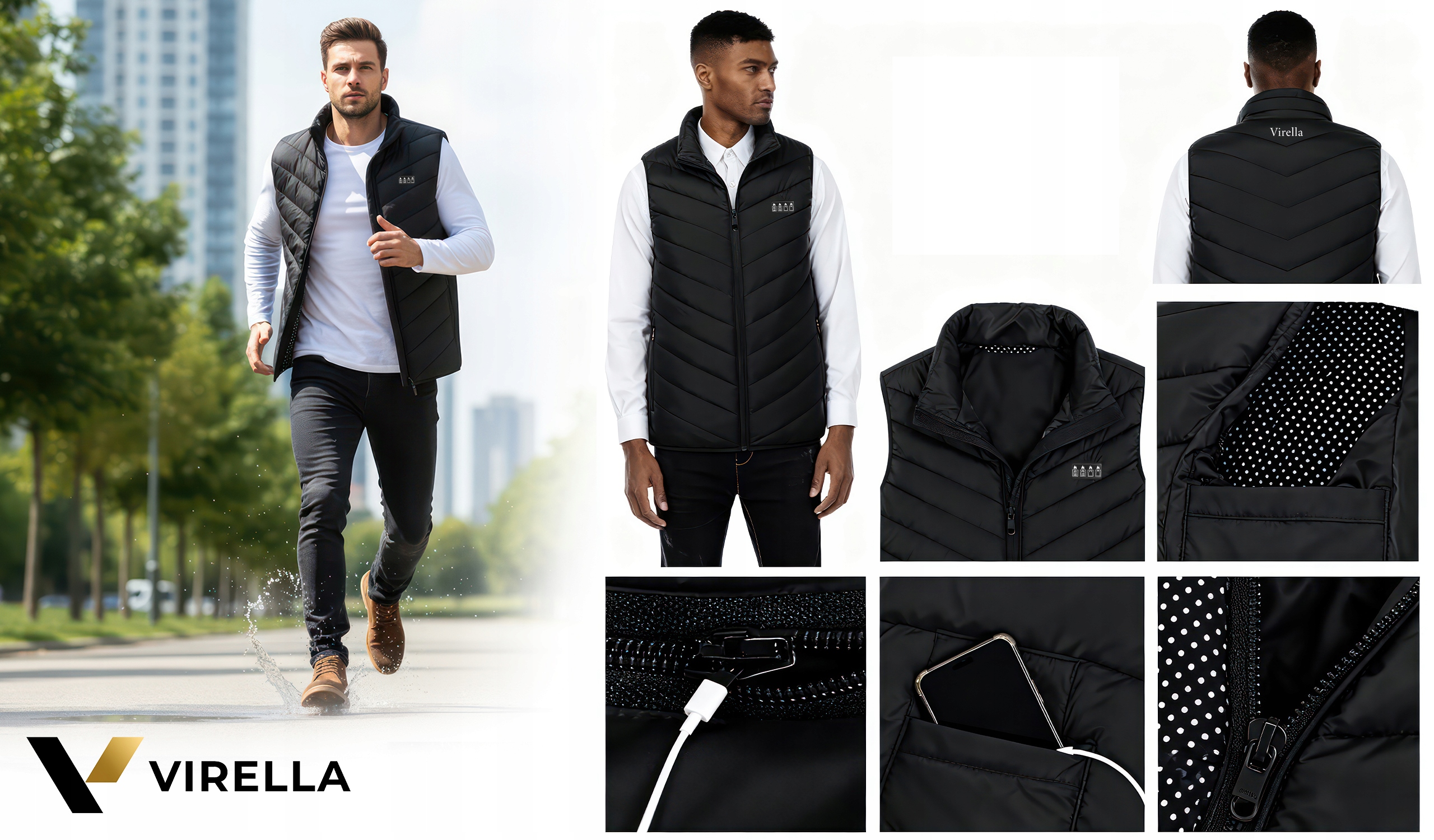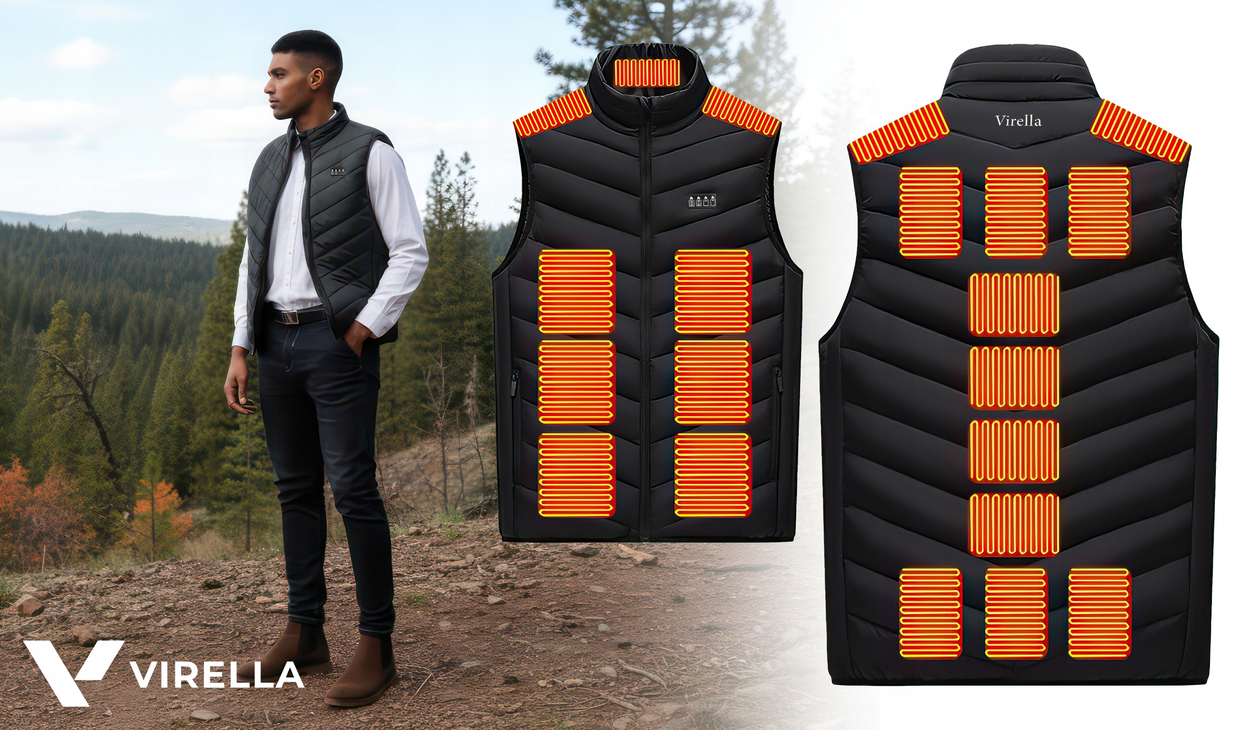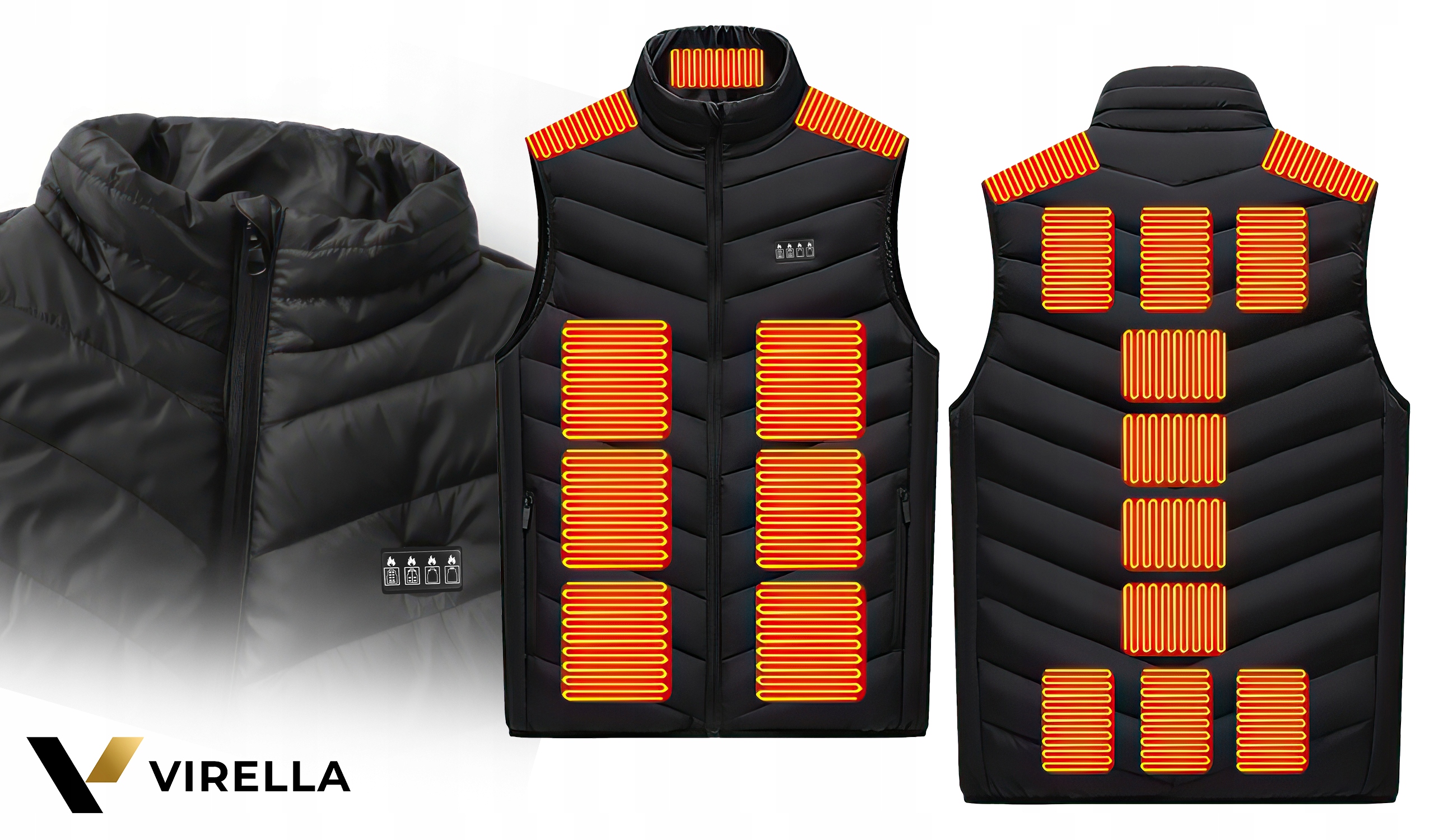 Жилет Virella имеет целых 21 активную точку нагрева и 4 отдельно переключаемые зоны, что дает ему преимущество перед моделями с 5-11 точками. Питание USB 5 В означает полную мобильность: подключите любой блок питания, и вы получите нагрев за 90 секунд.