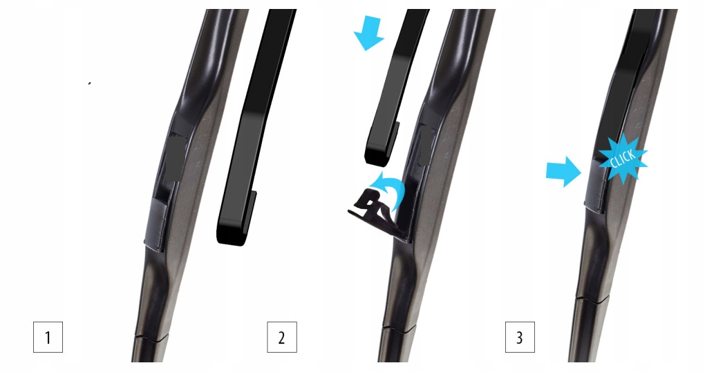 Гибридные дворники – это, проще говоря, комбинация классические дворники с П-образным креплением и бесшарнирные дворники. Их аэродинамический дизайн и использование спойлеров снижают шум, создаваемый потоком воздуха через дворники во время движения, и в то же время увеличивают давление на стекло, что повышает эффективность его очистки.