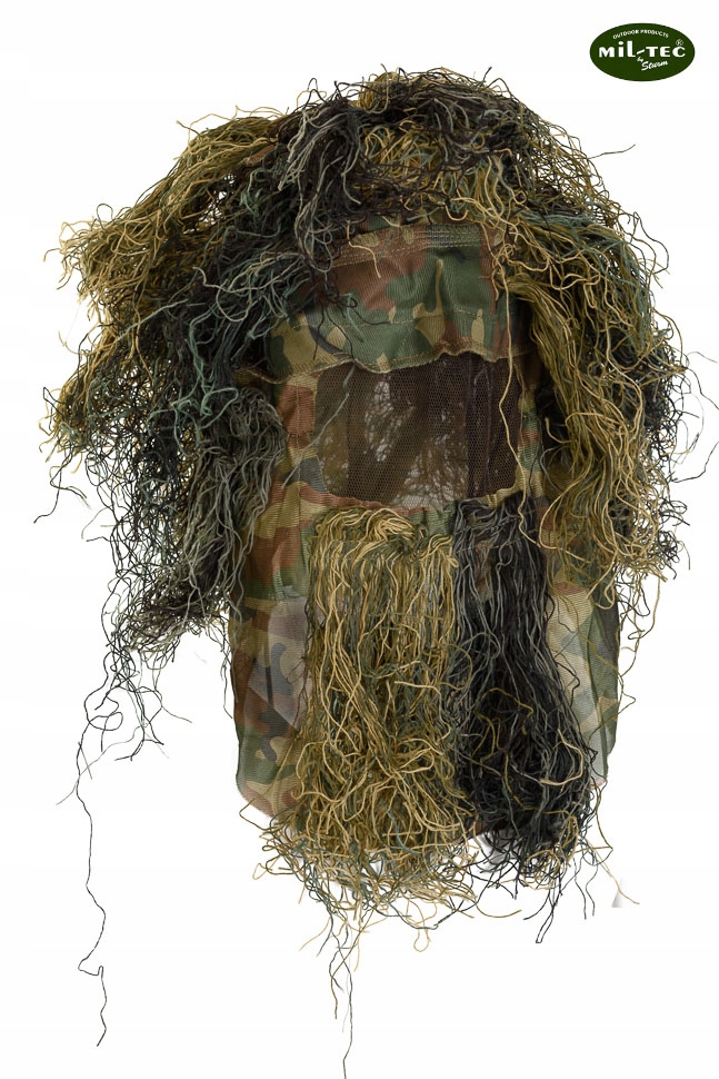 Комплексная снайперская маска в лесном камуфляже, 4 шт. Он был разработан специалистами для снайперов. Также идеально подходит для охотников и любителей пейнтбола или ASG. Его необыкновенную эффективность оценила элита специальных подразделений по всему миру. В настоящее время он используется большинством крупных армий. Комплект состоит из брюк, толстовки, шапки/капюшона с москитной сеткой, камуфляжа для оружия, чехла и лямок. Маскировочный костюм представляет собой тысячи пучков разноцветной пряжи «бахрома», пришитой к специальной камуфляжной одежде – выглядит очень естественно. Маскалат дополнительно размывает четкий и характерный человеческий силуэт на фоне окружающей обстановки. Хотя существует множество современных камуфляжей, маскировочный костюм является наиболее эффективным и универсальным. Ghillie Suit обеспечивает отличную маскировку в полевых условиях независимо от факторов: времени года, цвета фона и условий освещения. Маски в очень широком диапазоне цветов фона и в переменных условиях тени. Изготовлено по системе «Антипожар», которая задерживает и ограничивает распространение огня. Материалы полностью устойчивы к гниению и плесени, быстросохнут и устойчивы к УФ-излучению. Изготовлен из прочного, дышащего материала и плотной сетки, которая прекрасно отводит тепло и пар тела наружу (предотвращает перегрев). Чрезвычайно удобный, свободный крой - свобода движений в различных положениях для стрельбы. На голову надевается шапка/капюшон с москитной сеткой для глаз и дополнительной маской для лица, шеи, затылка и ушей. Шапка (верхняя часть и поля) из водонепроницаемой ткани, предотвращающей затопление головы водой во время дождя. Толстовка застегивается на бесшумные кнопки и имеет резинку на талии, позволяющую подогнать ее под различные силуэты. Специальные прорези обеспечивают доступ к карманам под камуфляжем. Нижний край толстовки закреплен широким подолом. Свободные брюки с вшитой широкой резинкой и дополнительной регулируемой кулиской на талии. Застежки-молнии на штанинах позволяют надевать их, не снимая обувь. В нижней части штанин пришиты эластичные ленты, которые скрывают обувь и предотвращают скатывание ног и предотвращение наступления на них. Дополнительная лента Ghillie для маскировки оружия, эластичная резина с вшитыми «бахромой» позволяет быстро, качественно и надежно замаскировать оружие. Ремешки облегчают скатывание маскилата. В комплект входит компактный чехол с ручкой для транспортировки из нейлоновой сетки.