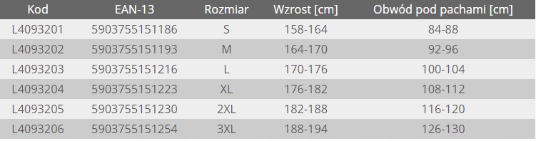 Ниже приведена таблица размеров для более удобного выбора одежды.