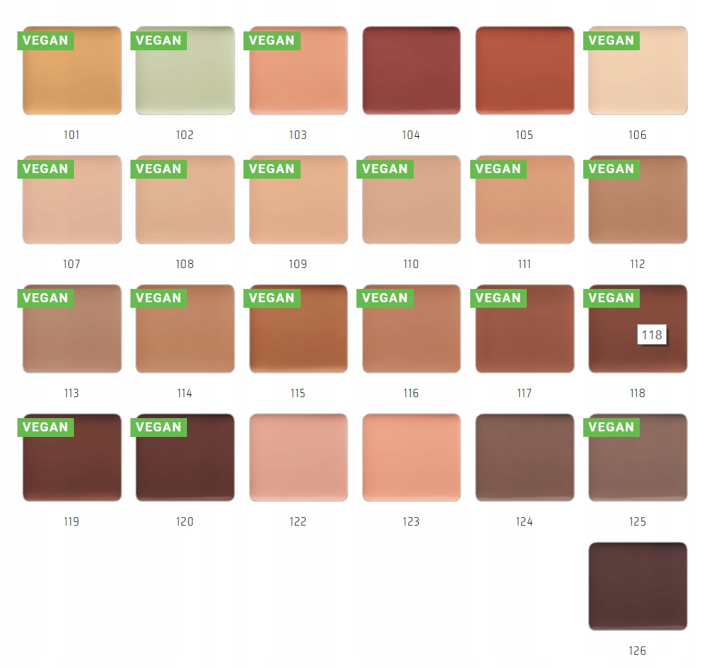 - Оттенок 104 (красный) – маскирует темные круги у людей с азиатской или смуглой кожей;