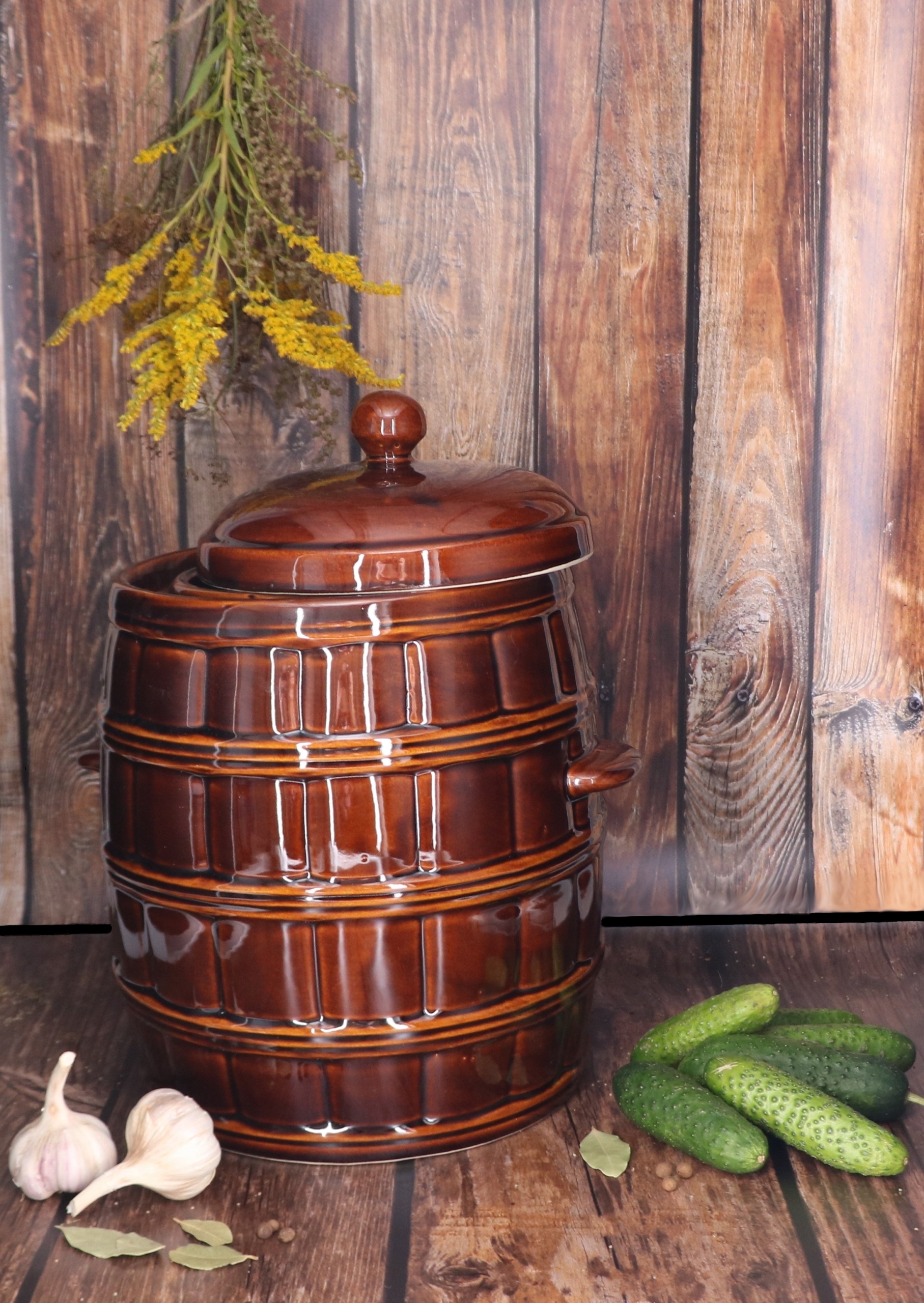 Многофункциональная посуда, пригодится на каждой кухне. Идеально подходит для хранения сала и солений. Традиционный внешний вид позволяет ему вписаться в большинство интерьеров не только домов, но и ресторанов. Керамическая бочка устойчива к воздействию кислот, поэтому особенно подходит для приготовления маринованных огурцов, капусты, перца, грибов и других продуктов.