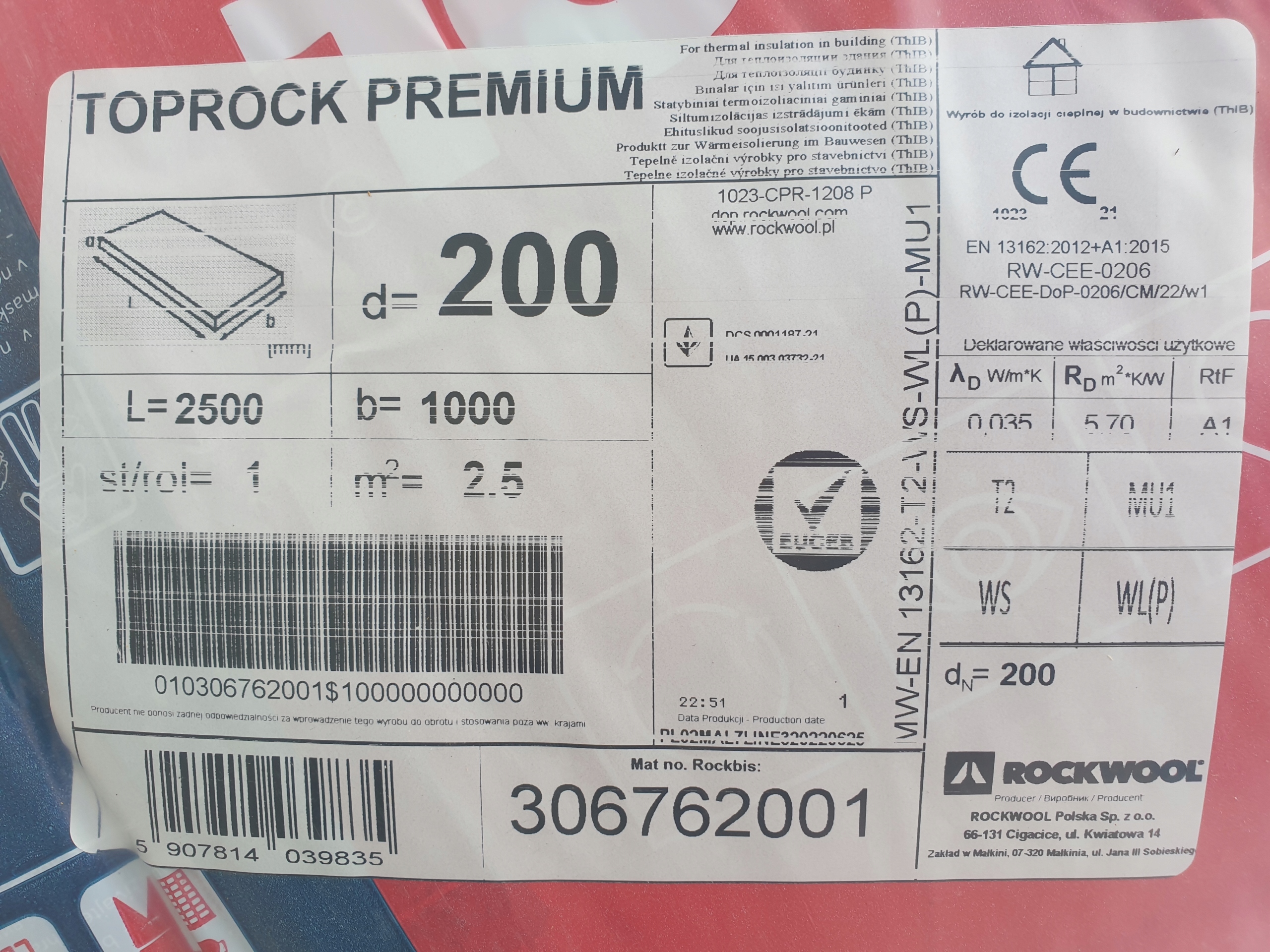 Кам'яна мінеральна вата ROCKWOOL TOPROCK PREMIUM 20см