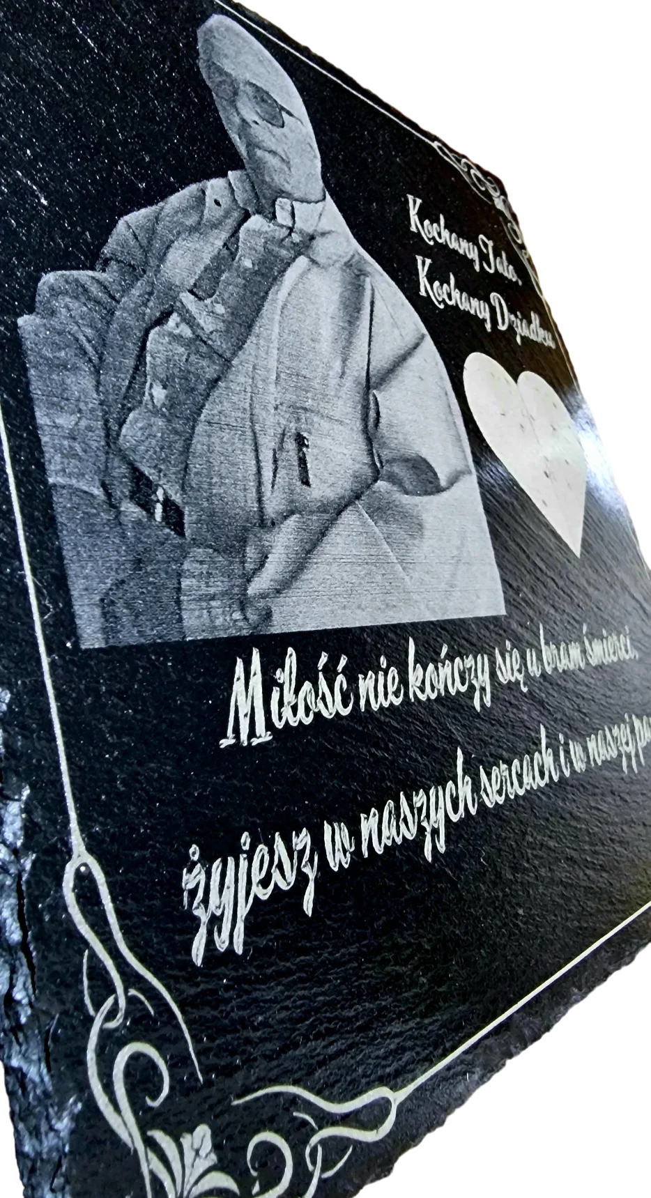 Мы используем прочный и эстетичный материал – шифер, который придает табличке неповторимый характер. Это камень, который прослужит долгие годы, сохраняя свою красоту. Вы можете выбрать фотографию, имеющую для вас особое значение, и мы выжжем ее на мемориальной доске, создав необычный сувенир. Кроме того, вы можете добавить любой текст, который выразит ваши чувства, мысли или преданность делу.