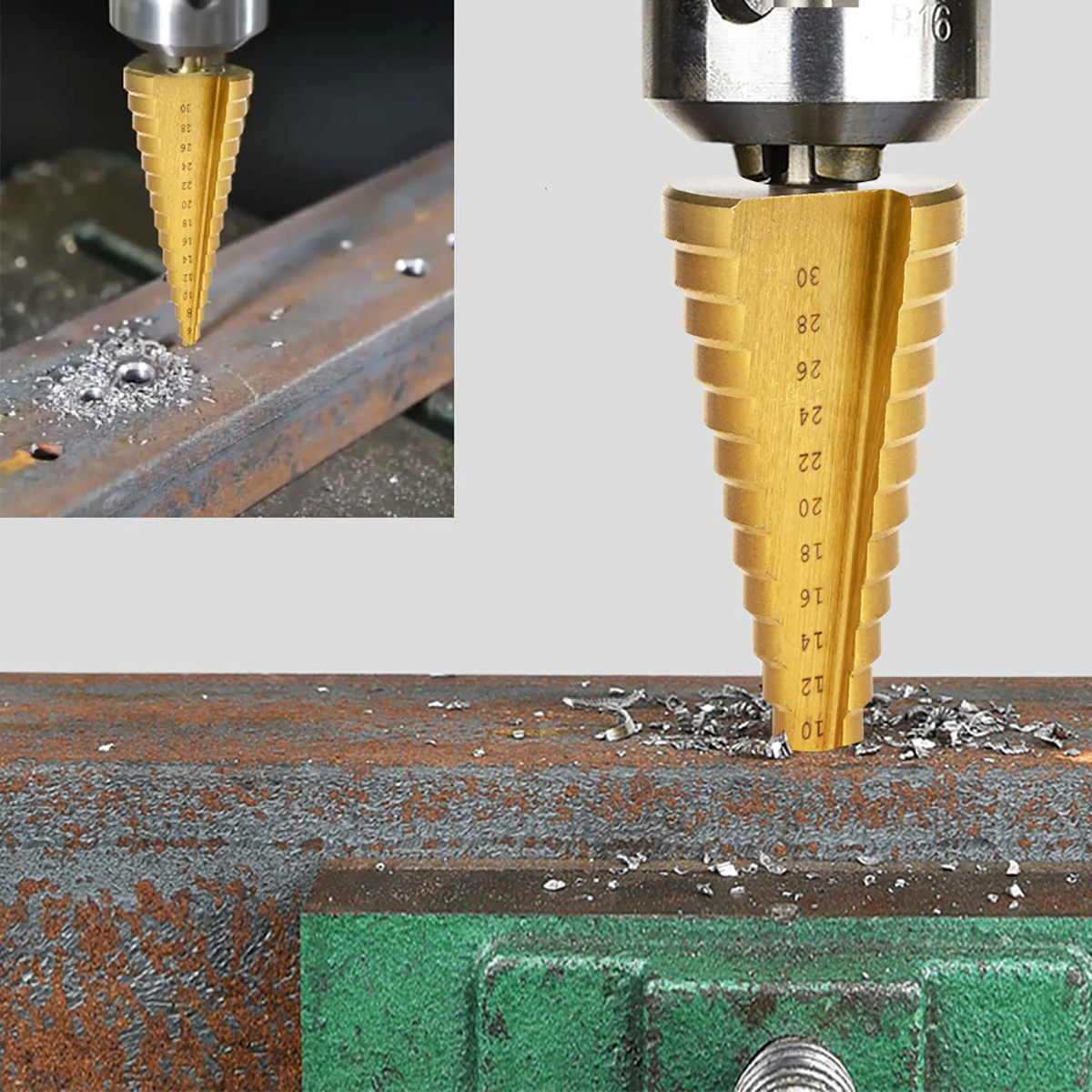 РОЖДЕСТВЕНСКАЯ ЕЛКА СТУПЕНЧАТОЕ СПИРАЛЬНОЕ КОНИЧЕСКОЕ СВЕРЛО ПО МЕТАЛЛУ 4-30 ММ HSS ТИТАН