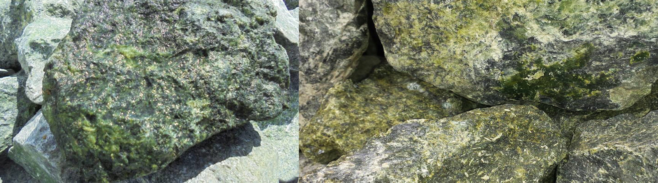Метаморфическая горная порода с волнистой прожилковой структурой. Преобладающая окраска здесь зеленая с белыми пятнами. Свою популярность камень приобрел в таких водоемах, как Танганьика Малави.