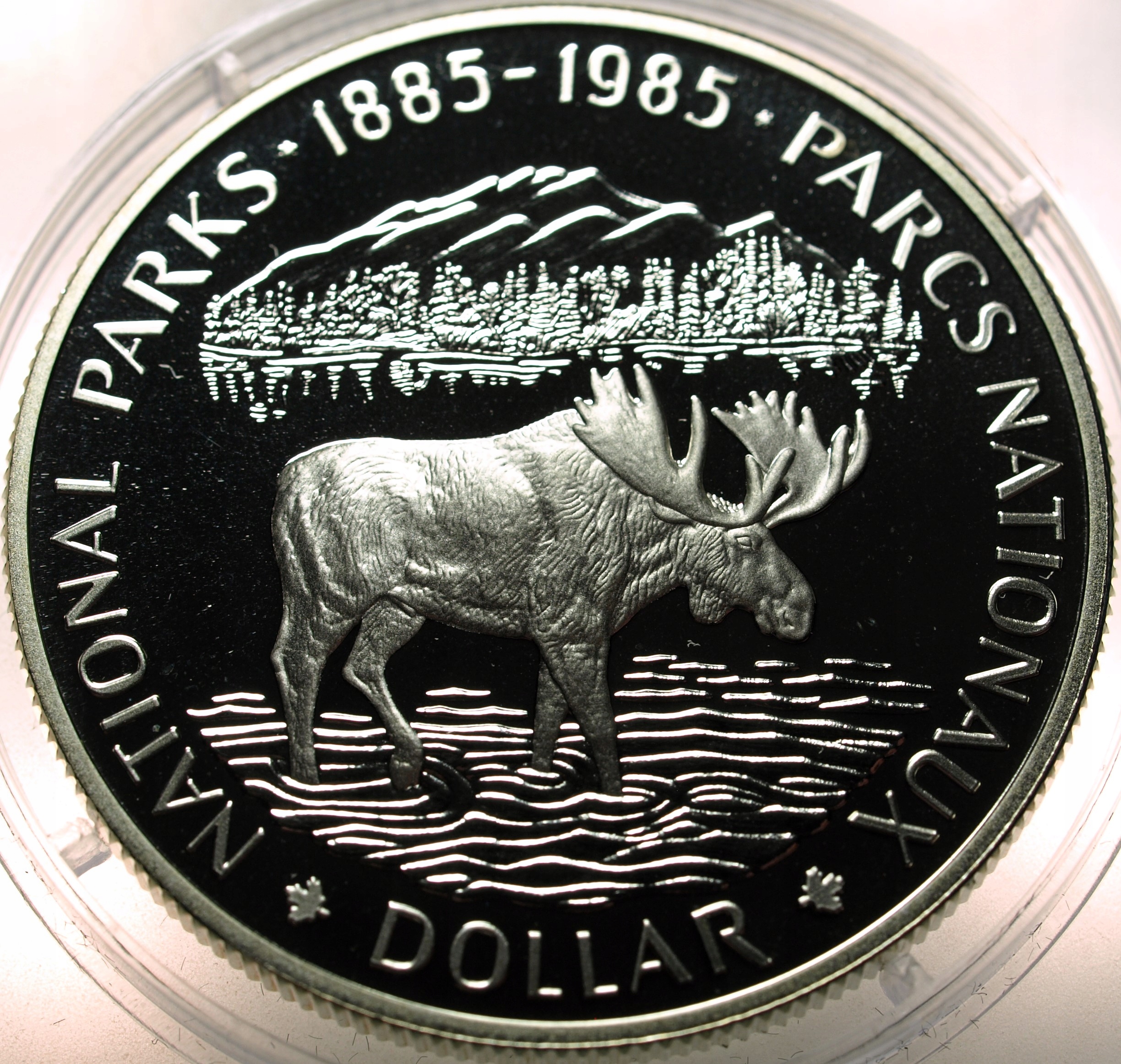 Канада 1 доллар 1985 100 лет национального парка серебряных канадских долларов. Оригинал Проверьте другие аукционы - Соберите редкие значения с Numismrato!