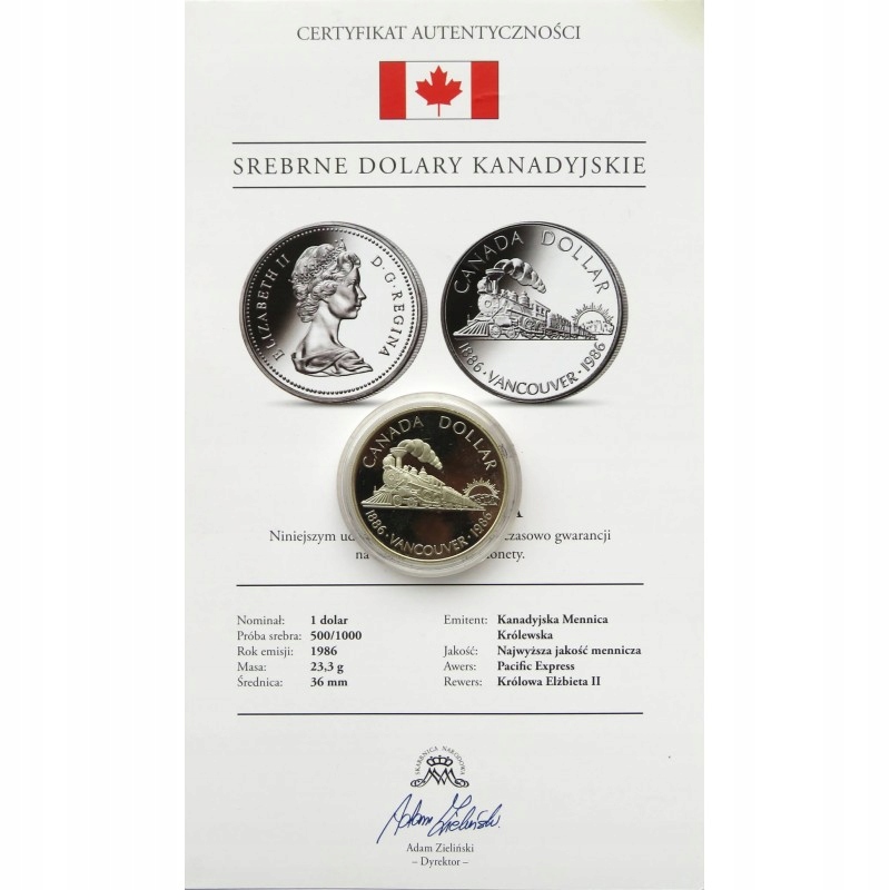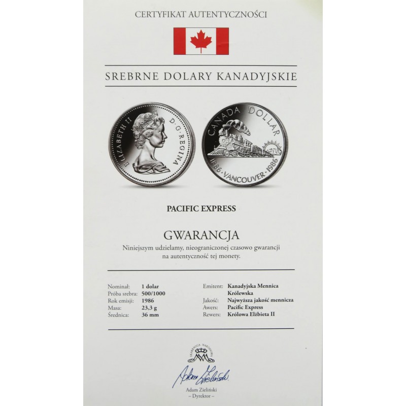 Канада 1 долар - Pacific Express 1986 + сертифікат