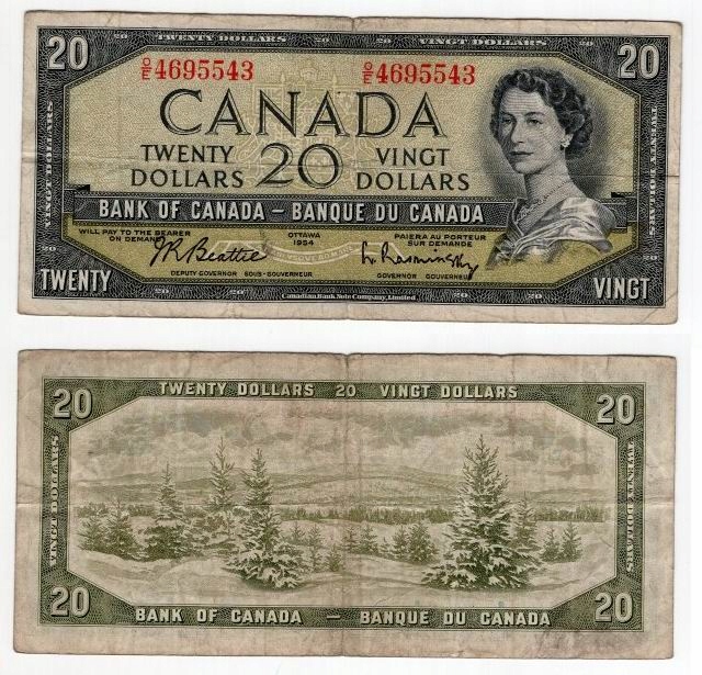 КАНАДА 20 ДОЛЛАРОВ 1954 ГОДА РЕДКИЕ