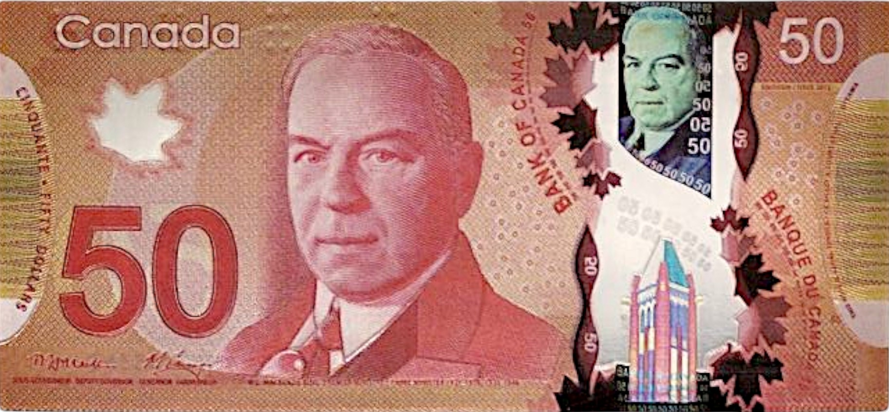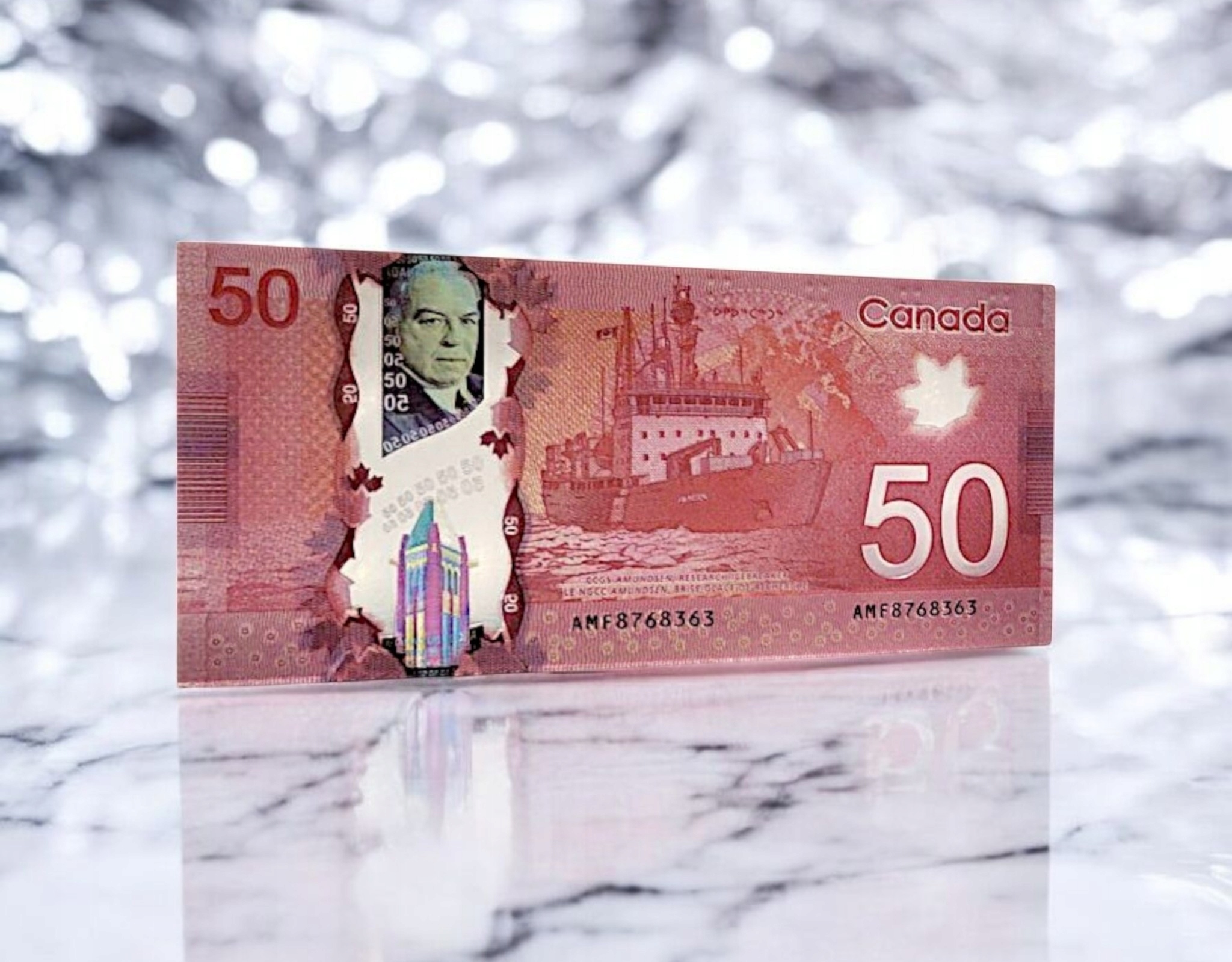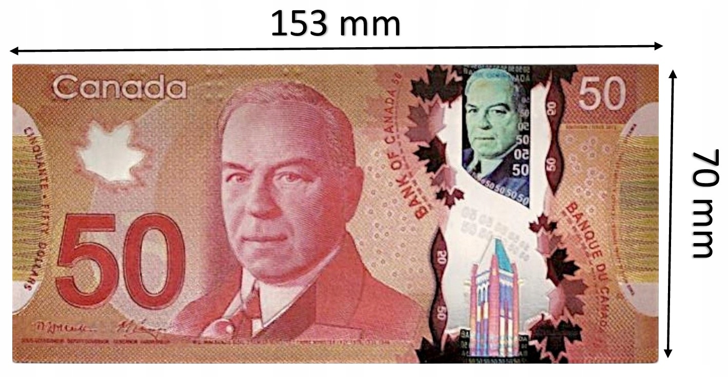 БАНКНОТА 50 ДОЛЛАРОВ КАНАДА, ПОЗОЛОЧЕННАЯ БАНКНОТА из ПВХ