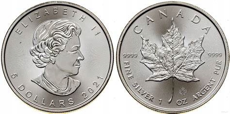 Канадський кленовий лист 1 унція срібла 2021 року в монетному дворі