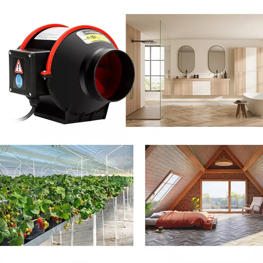 - Этот канальный вентилятор хорошо подойдет в промышленности, доме и садоводстве, он идеально подходит для вентиляции и очистки воздуха. Идеально подходит для установки в ванных комнатах, мастерских, кухнях, подвалах, теплицах или палатках для выращивания растений. Он позволяет эффективно удалять лишнюю влагу, дым, запахи и обеспечивать циркуляцию свежего воздуха в помещениях.