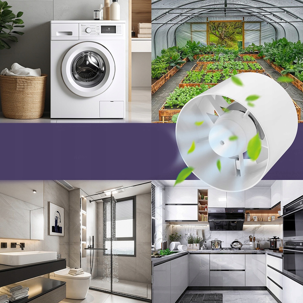 Универсальное применение: Для вентиляции ванных комнат, душевых, кухонь, туалетов, гаражей, подвалов, дач, тропических теплиц, палаток, подвалов, прачечных, технических помещений и других подсобных помещений.