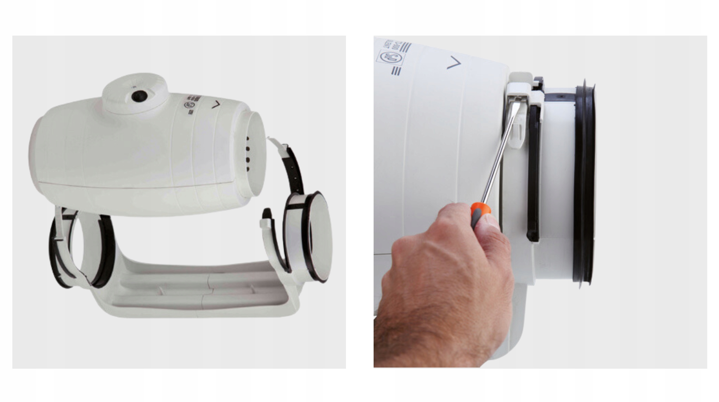 1️⃣ Ослабьте хомуты с обеих сторон вентилятора.