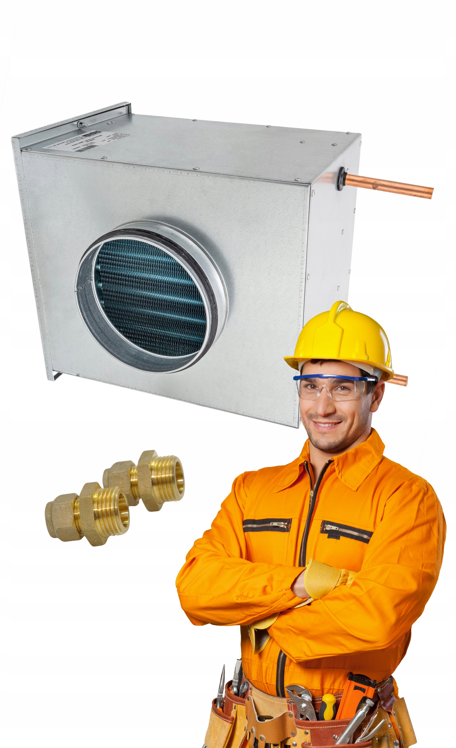 КАНАЛЬНЫЙ ВОДОНАГРЕВАТЕЛЬ Ø 150 мм Рекуперация тепла + Соединители + Шланги Листовой металл