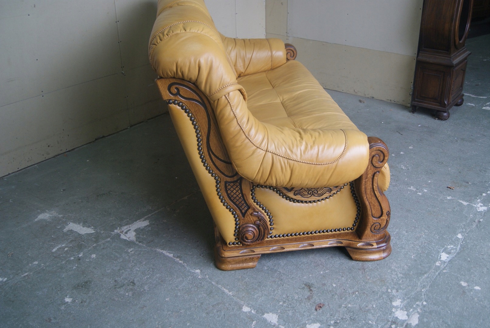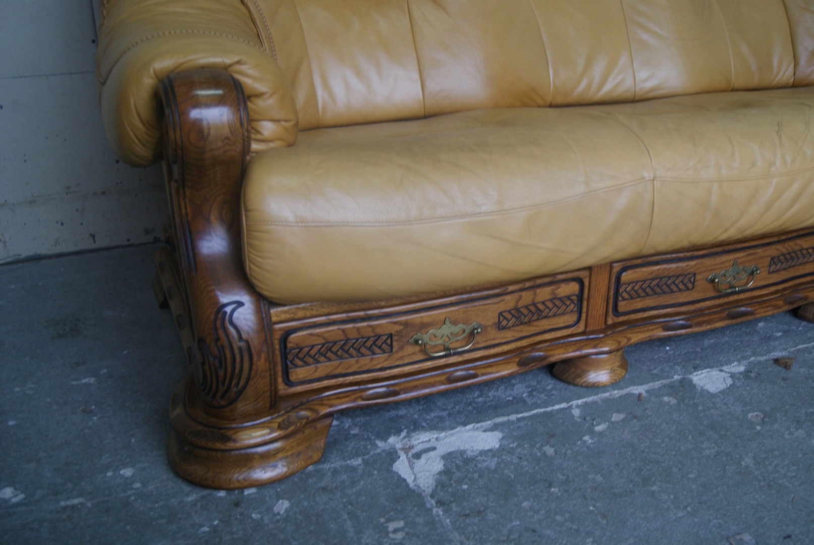 KANAPA 3 OSOBOWA Z PRAWDZIWEJ SKÓRY Z 3 SZUFLADAMI