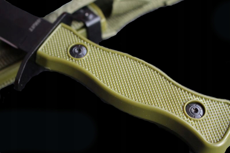 Нож поставляется в комплекте с чехлом из пластика и «сверхпрочного» нейлона, дополнительно армированного металлом. пряжка. В чехле также имеется карман, в котором находится точилка. В чехле также имеется крепление, позволяющее прикрепить нож.