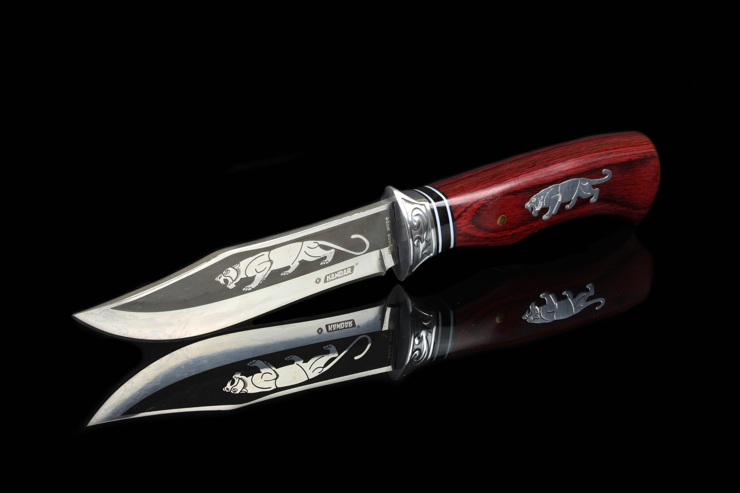 Нож Кандар имеет современный вид, очень прочный и удобный. Лезвие ножа изготовлено из стали №. 440. Эргономичная ручка представляет собой сочетание металла и дерева. Нож элегантный, острый и аккуратно сделан, идеален в качестве подарка. В комплект входит толстый клепаный чехол с креплением на ремень.