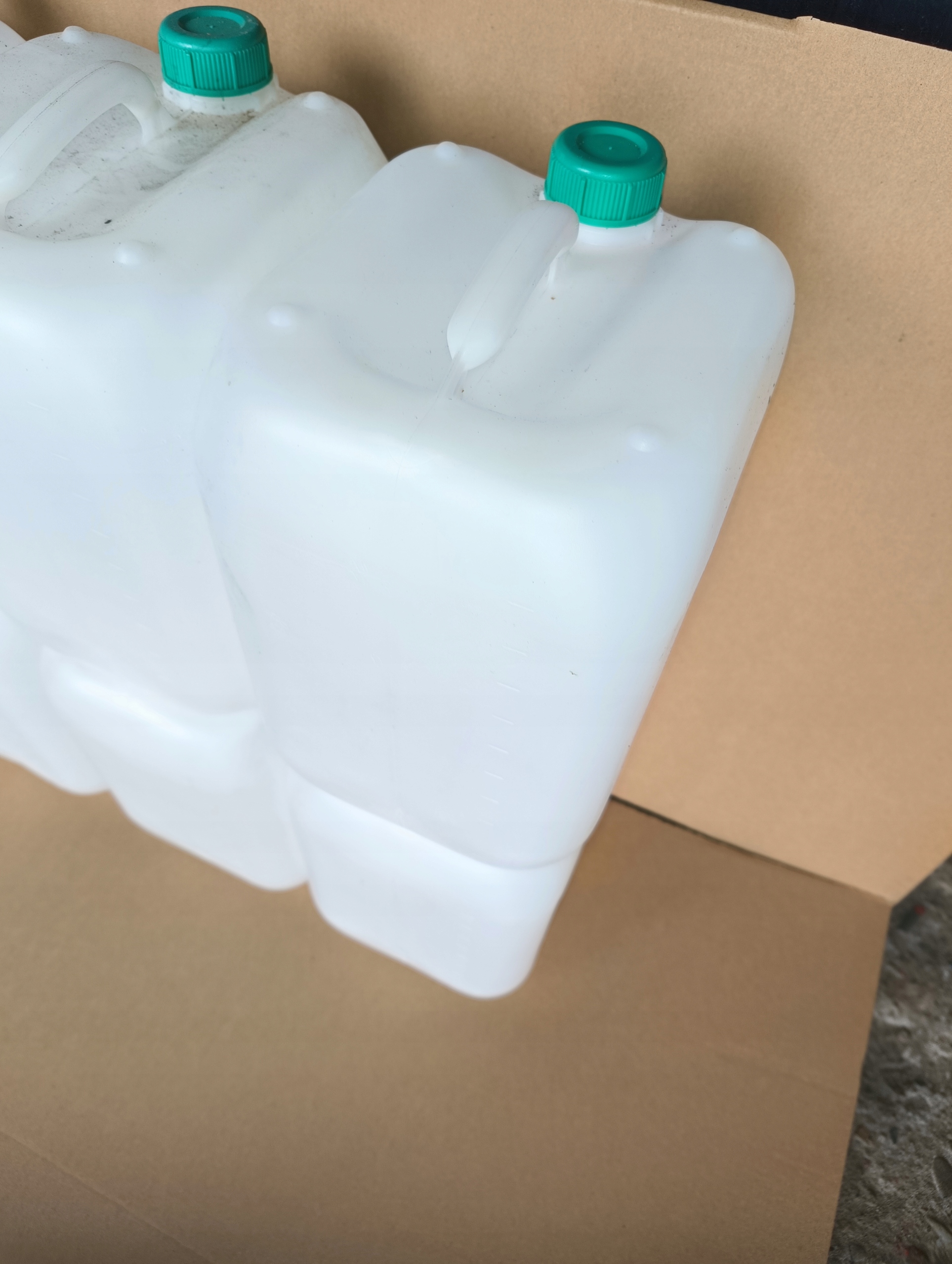 - прочно произведено в Германии (Kautex), имеет толстые стенки, ручку и тиснения, позволяющие хранить контейнеры друг на друге, и весы,